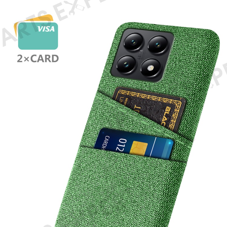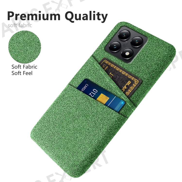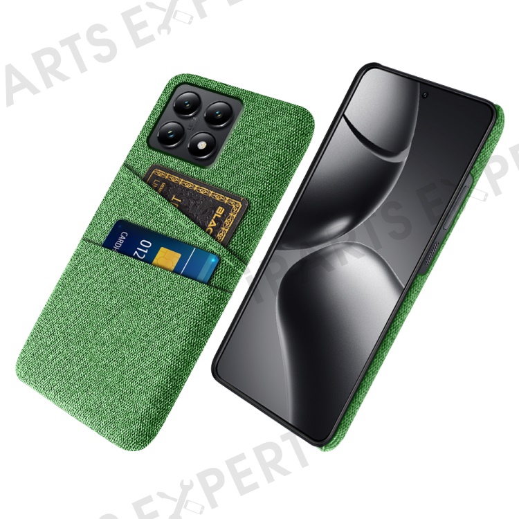 For Xiaomi 14T Case Cloth + Hard PC Phone Cover with Dual Card Slots - Green