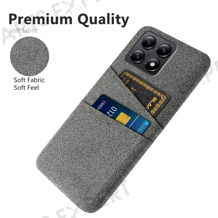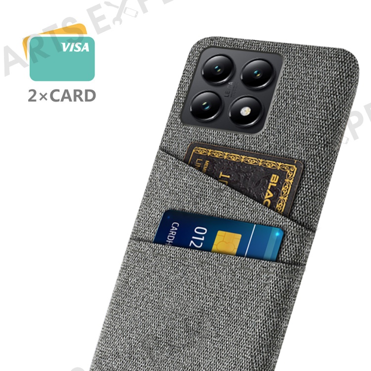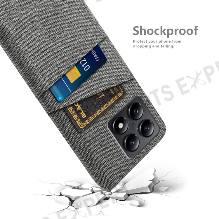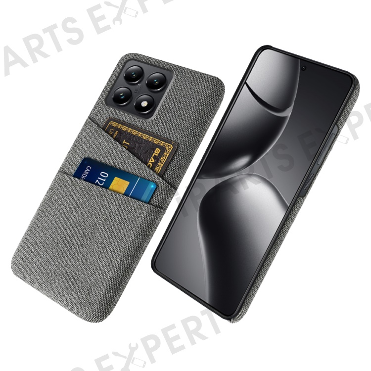 For Xiaomi 14T Case Cloth + Hard PC Phone Cover with Dual Card Slots - Grey