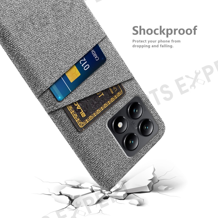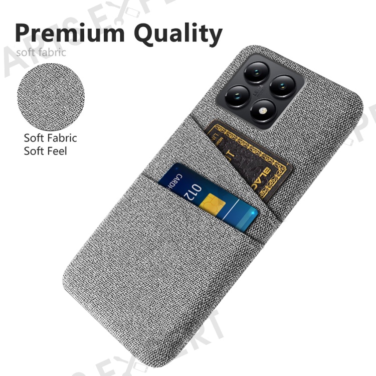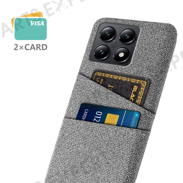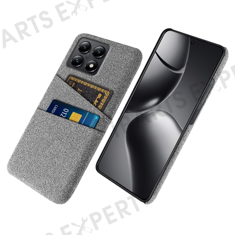 For Xiaomi 14T Case Cloth + Hard PC Phone Cover with Dual Card Slots - Light Grey