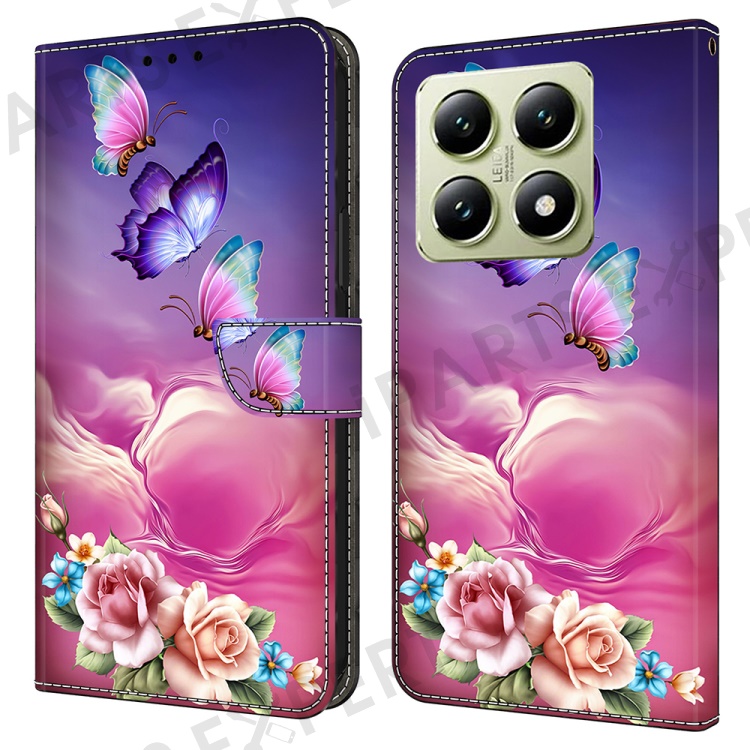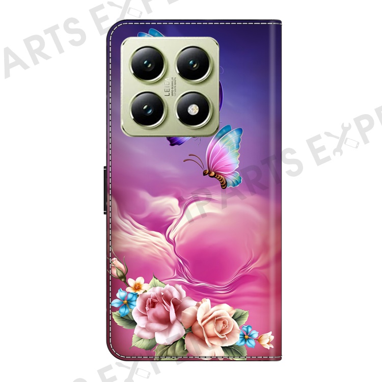 For Xiaomi 14T Case Pattern Printed Protective Cover TPU+PU Leather Flip Phone Case - Butterfly Flower