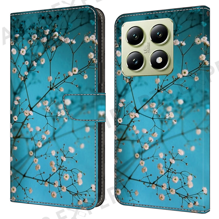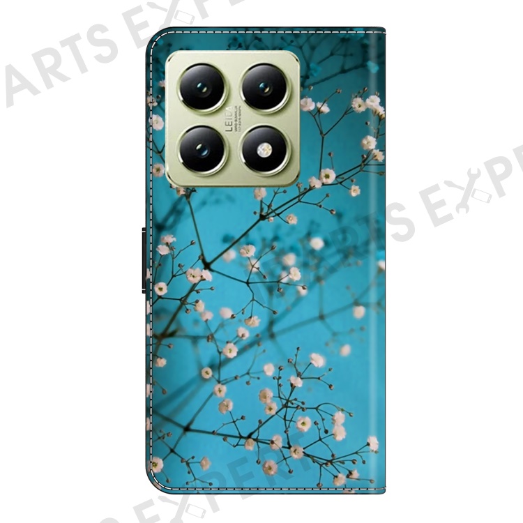For Xiaomi 14T Case Pattern Printed Protective Cover TPU+PU Leather Flip Phone Case - Flower Branch