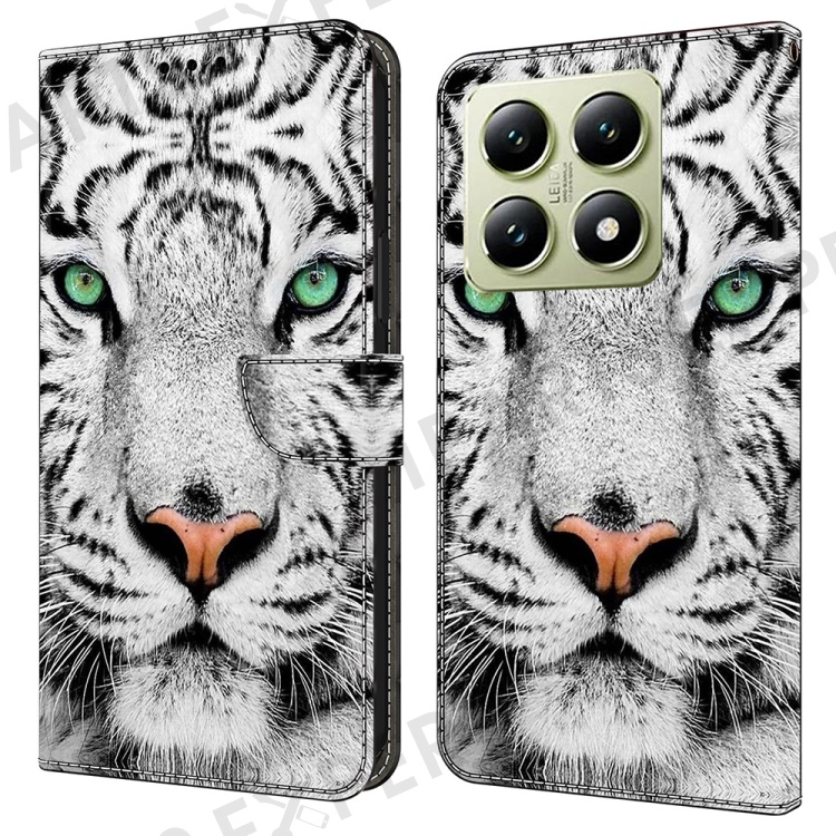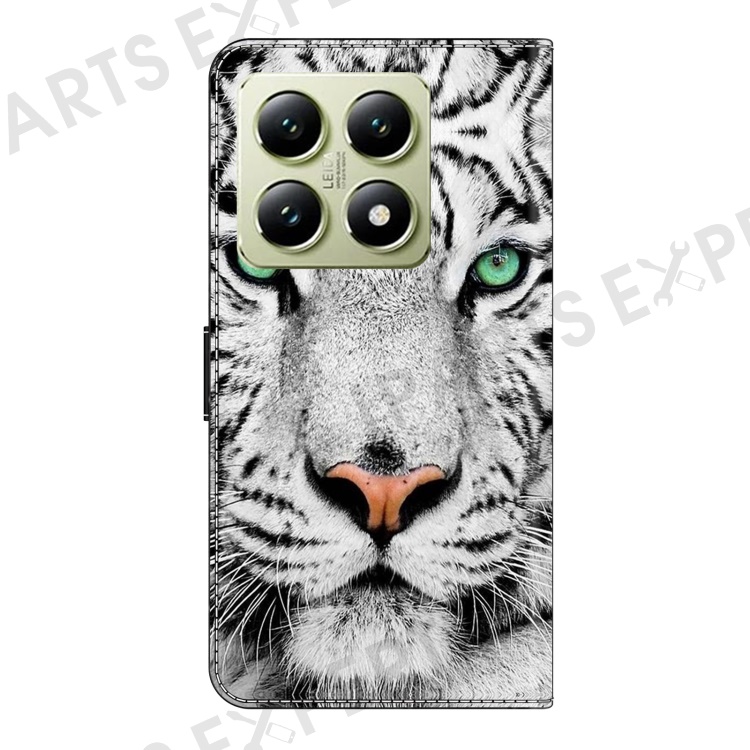 For Xiaomi 14T Case Pattern Printed Protective Cover TPU+PU Leather Flip Phone Case - Tiger Face