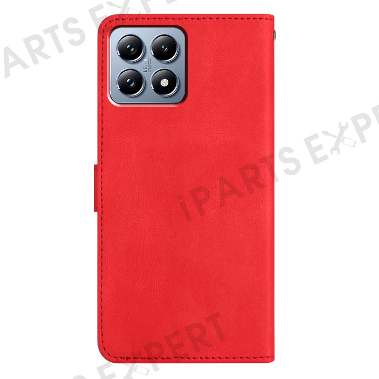 For Xiaomi 14T Pro Case Crazy Horse Texture PU Leather Wallet Stand Phone Cover - Red