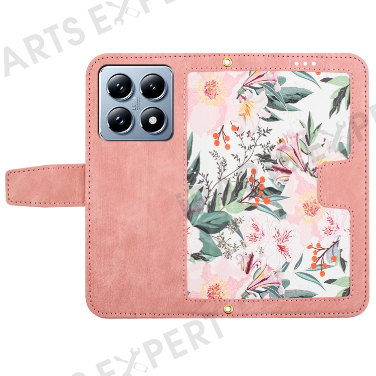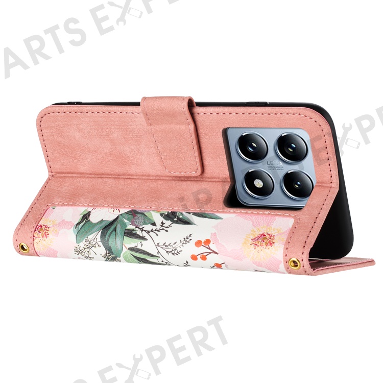 For Xiaomi 14T Pro Case PU Leather Floral Phone Cover with Card Slots - Pink