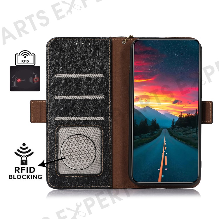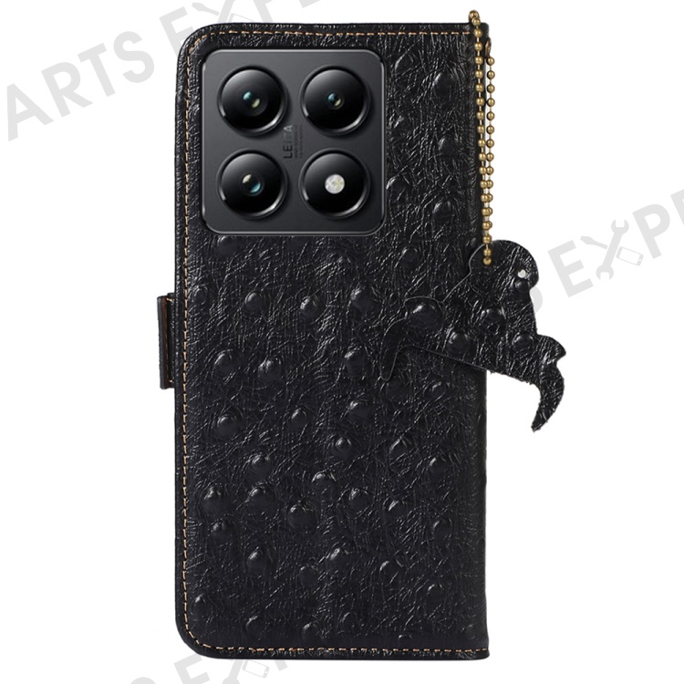 For Xiaomi 14T Pro Case RFID Blocking Genuine Cow Leather Phone Case Ostrich Texture - Black