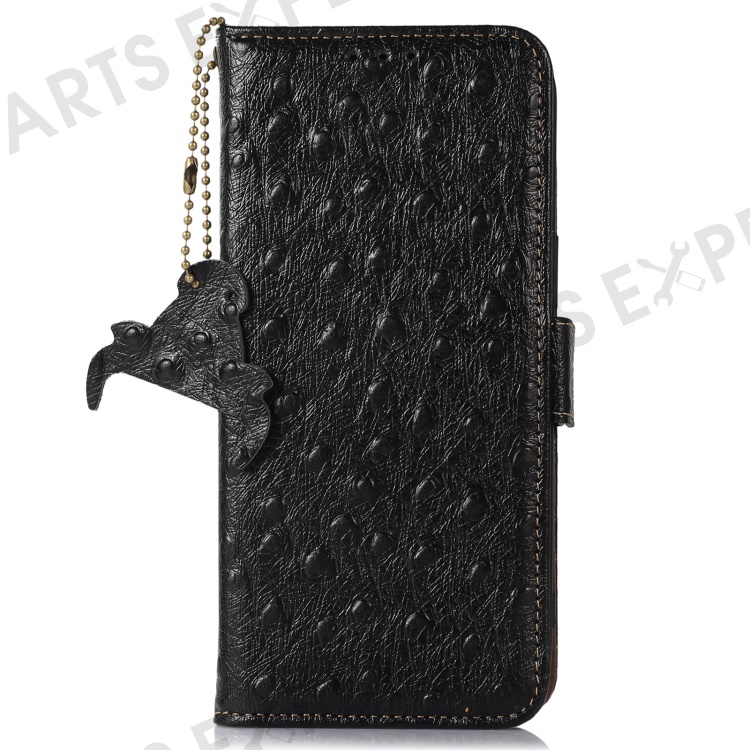 - 【Premium Material】 Made of premium genuine cow leather with delicate ostrich texture and TPU offers a good hand feeling, and comes with a small chain decoration
