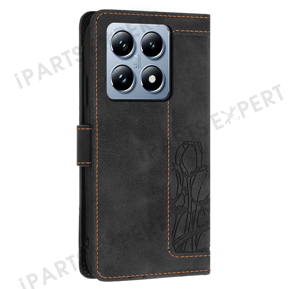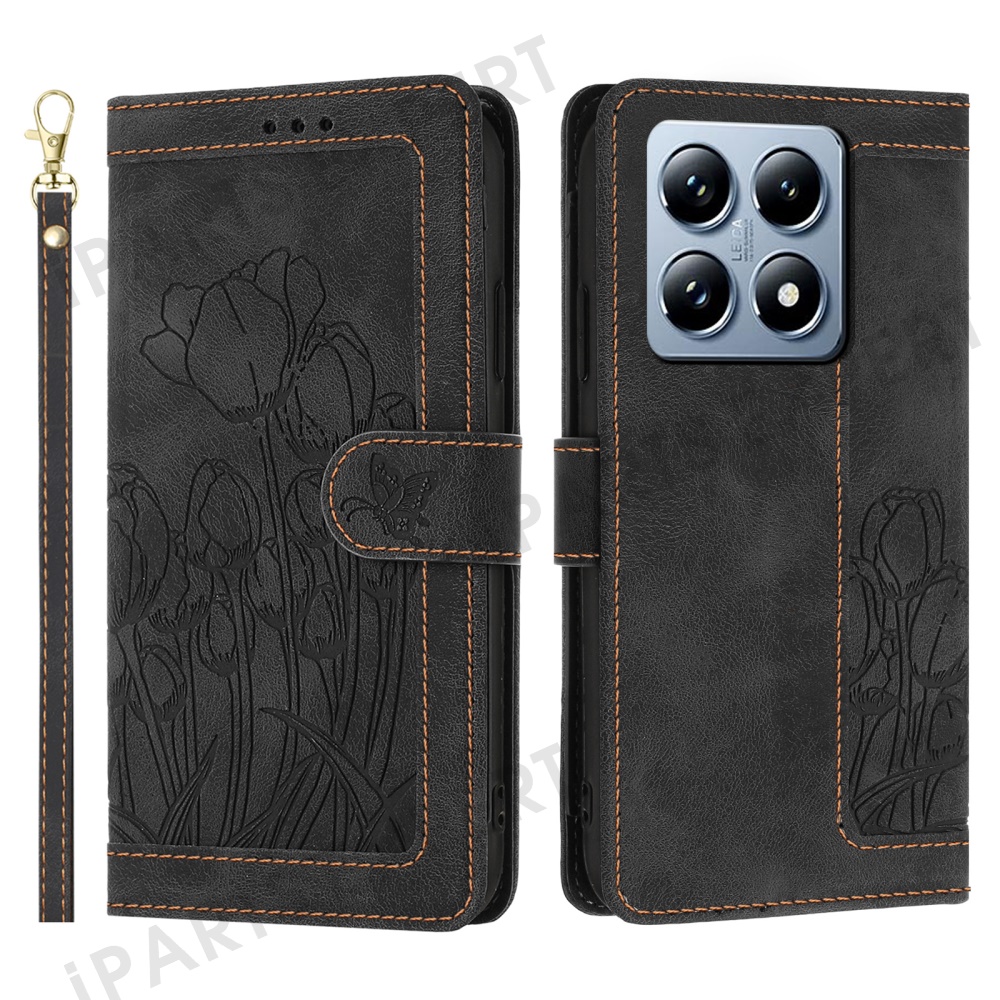 For Xiaomi 14T Pro Tulip Leather Case Phone Cover with 5 Card Slots Wallet - Black