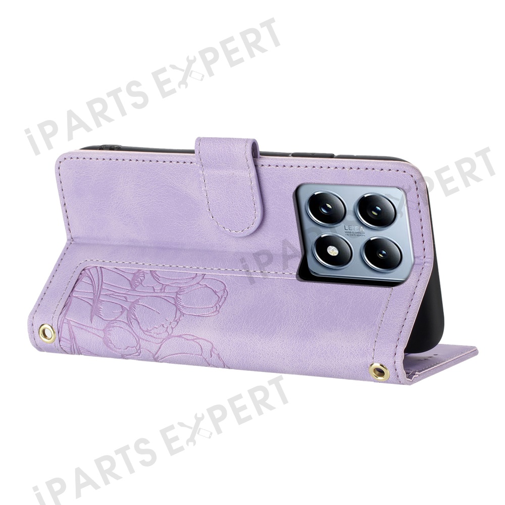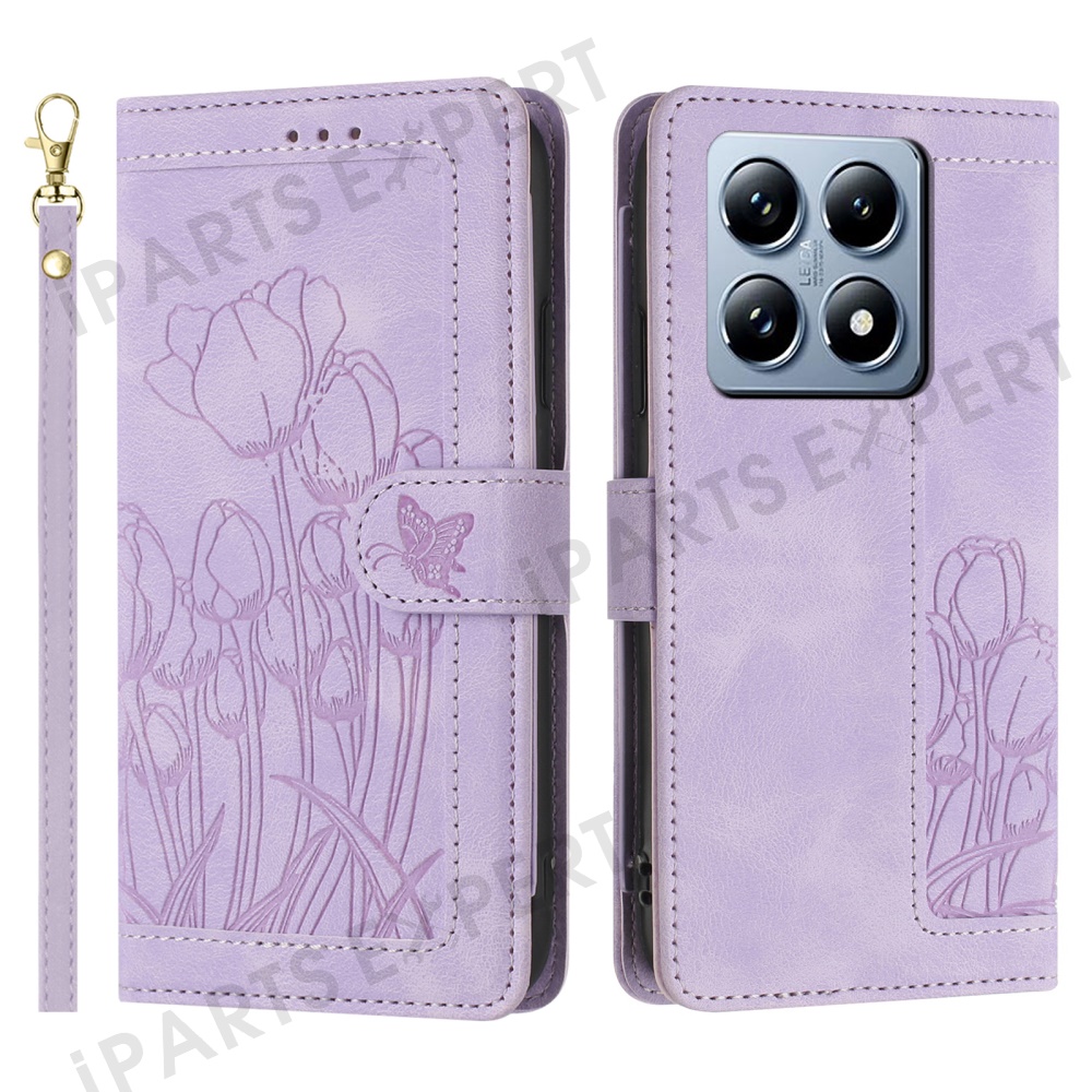 For Xiaomi 14T Pro Tulip Leather Case Phone Cover with 5 Card Slots Wallet - Purple
