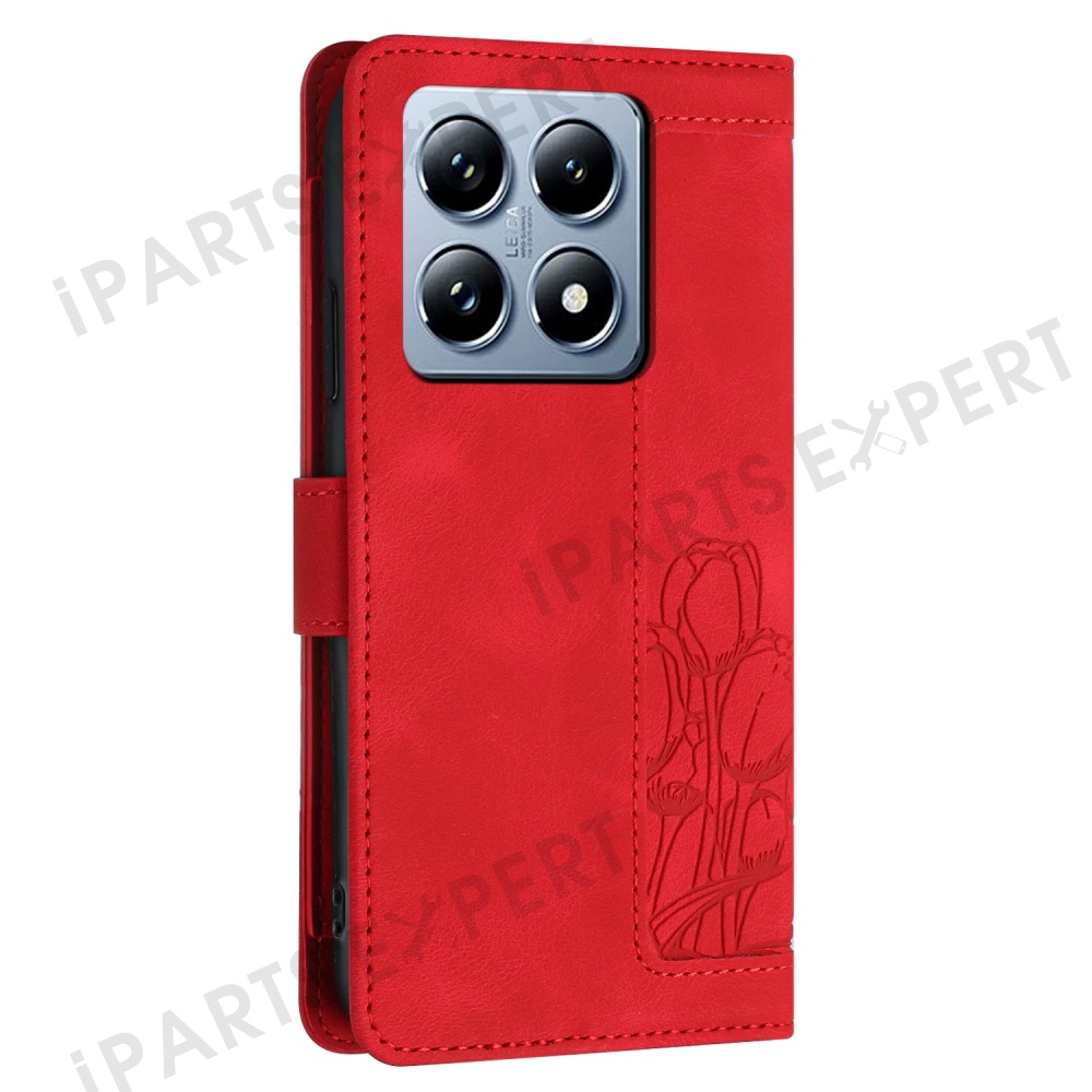 For Xiaomi 14T Pro Tulip Leather Case Phone Cover with 5 Card Slots Wallet - Red