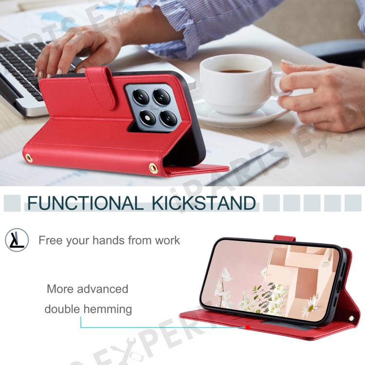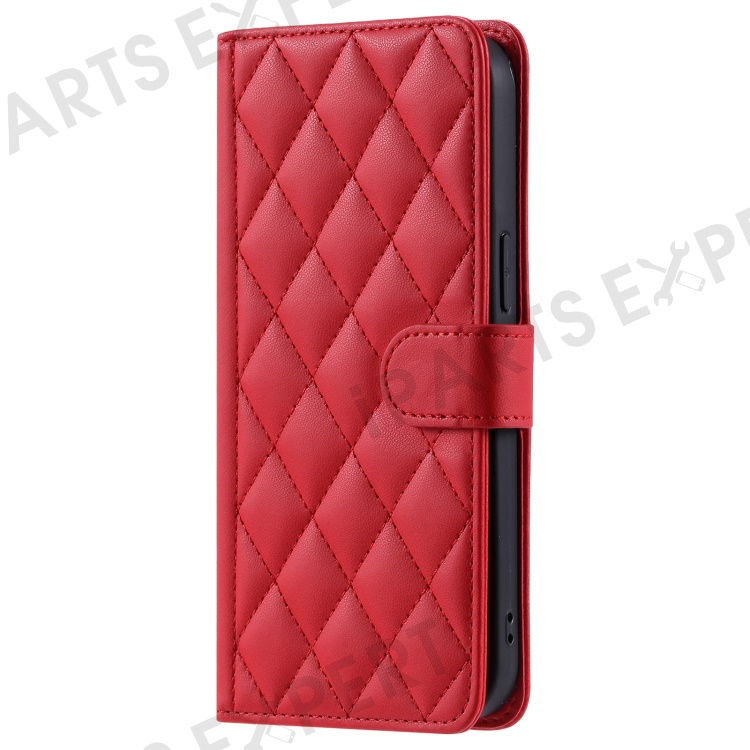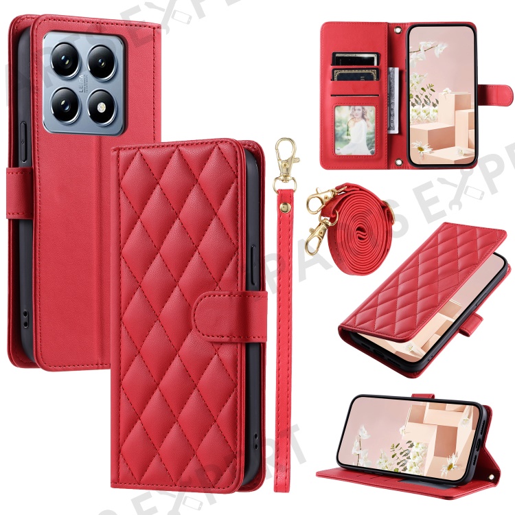 For Xiaomi 14T Wallet Case Rhombus Grid PU Leather Phone Cover - Red