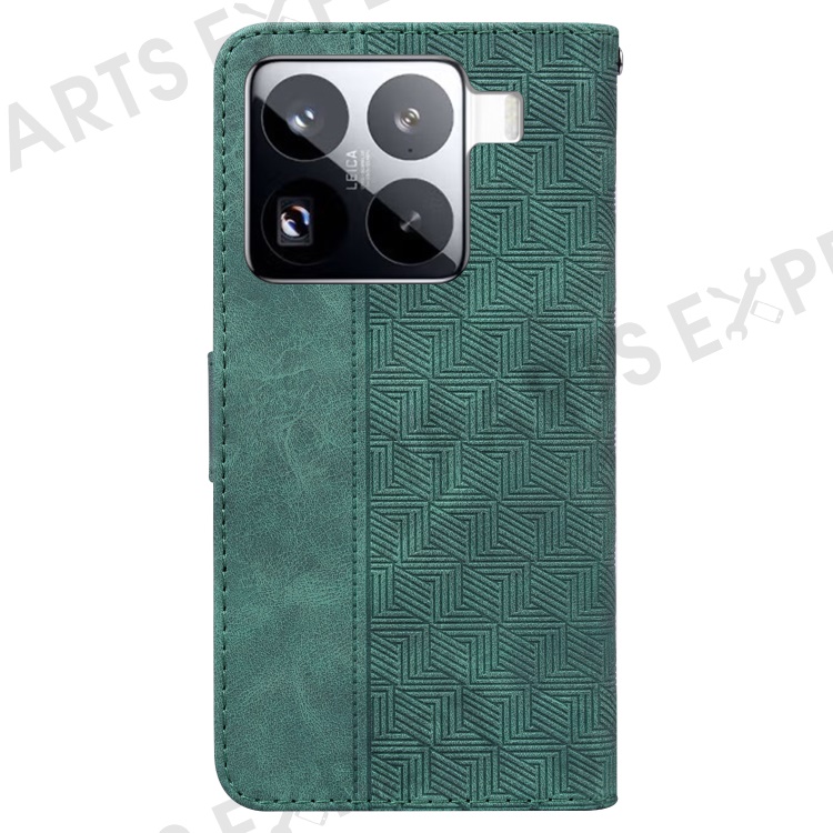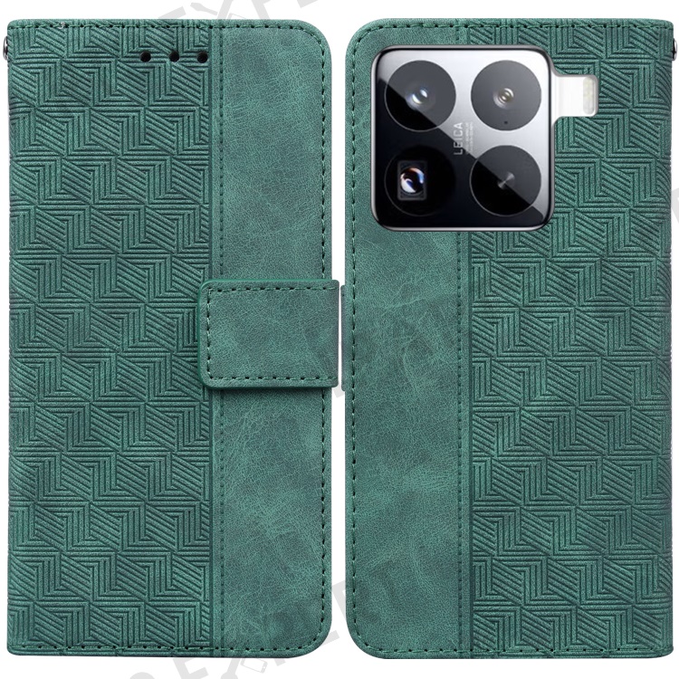 For Xiaomi 15 Pro Case Geometry Pattern Leather Wallet Phone Cover with Wrist Strap - Green