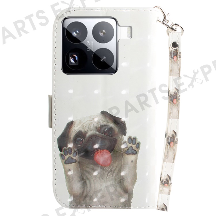 For Xiaomi 15 Pro Case Pattern Printing Leather Wallet Phone Cover with Wrist Strap - Pug