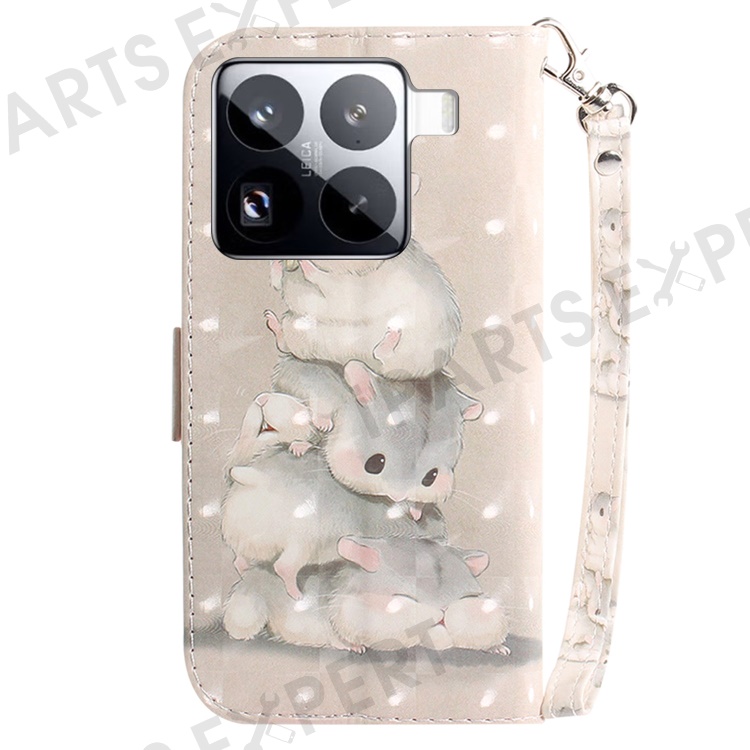 For Xiaomi 15 Pro Case Pattern Printing Leather Wallet Phone Cover with Wrist Strap - Stacking Squirrels