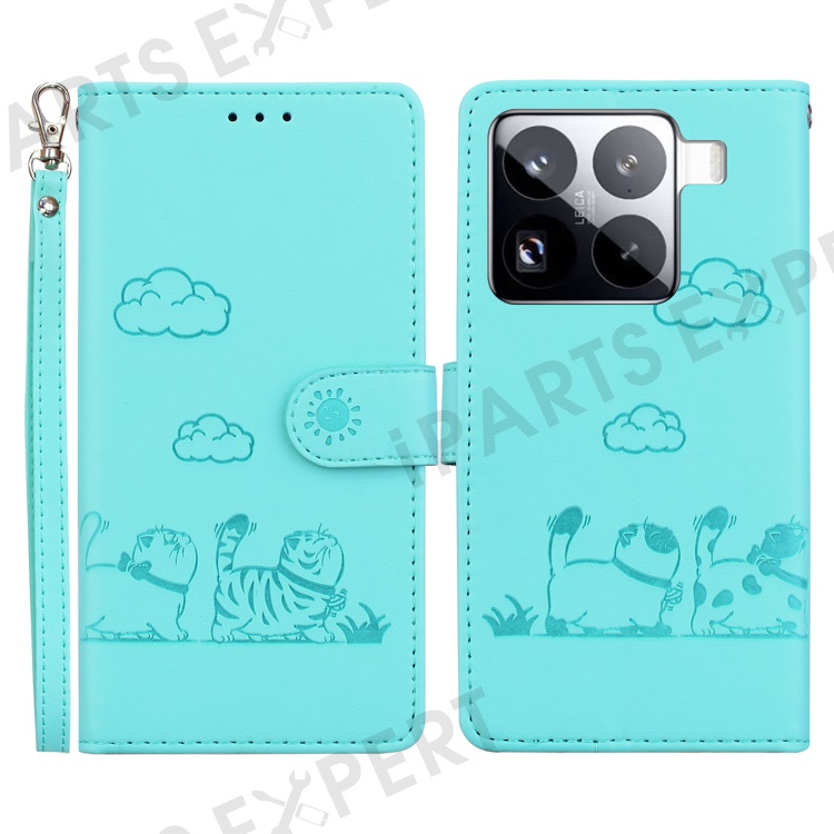For Xiaomi 15 Pro Case RFID Blocking Kitten Pattern TPU+PU Leather Phone Cover - Green
