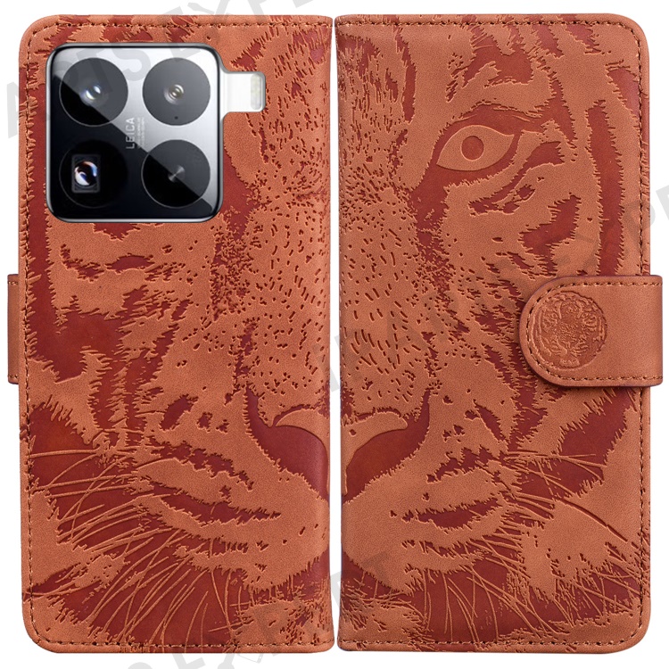 For Xiaomi 15 Pro Case Tiger Imprint Leather Wallet Phone Cover - Brown