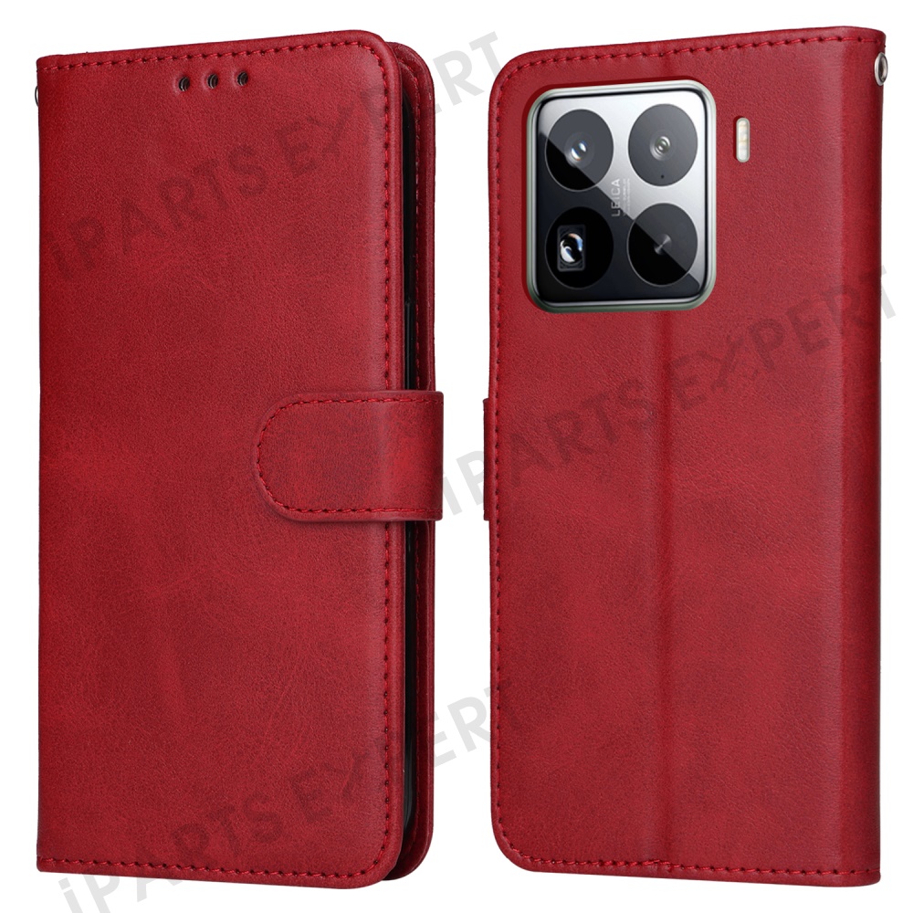 For Xiaomi 15 Pro Case Wallet PU Leather Folio Flip Phone Cover - Red