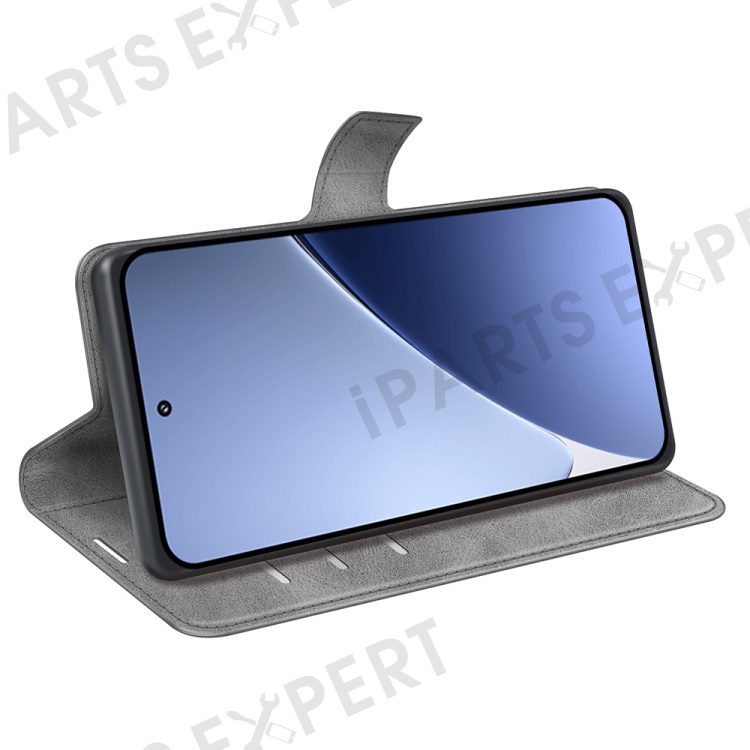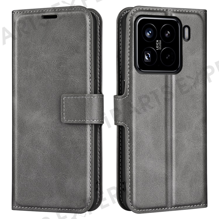 For Xiaomi 15 Pro Stand Case Anti-Scratch Calf Texture Leather Phone Cover - Grey