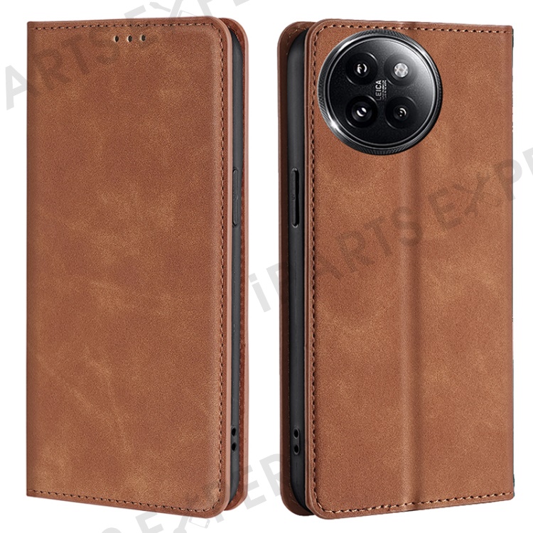 For Xiaomi Civi 4 Pro 5G / 14 Civi 5G Case Card Holder Magnetic Closing Leather Phone Cover - Light Brown