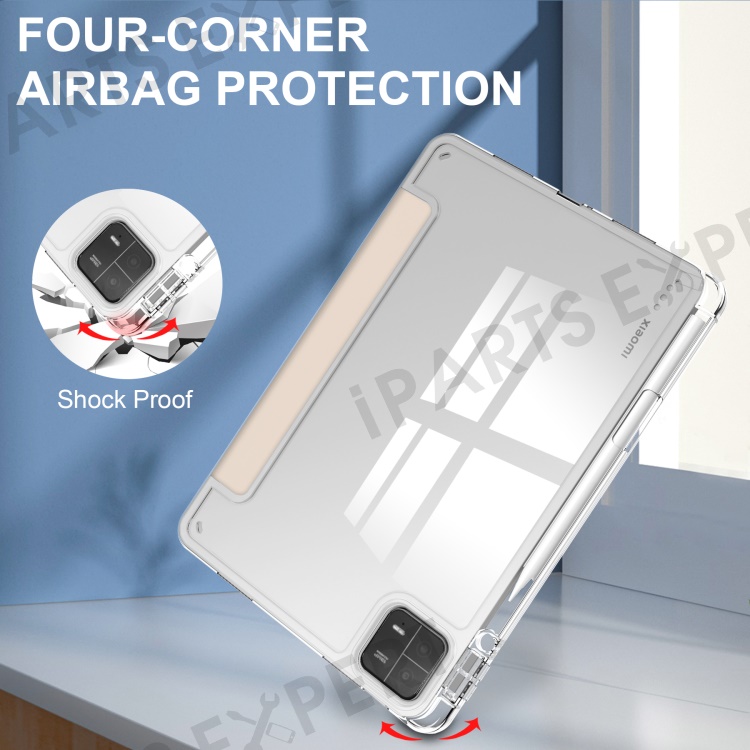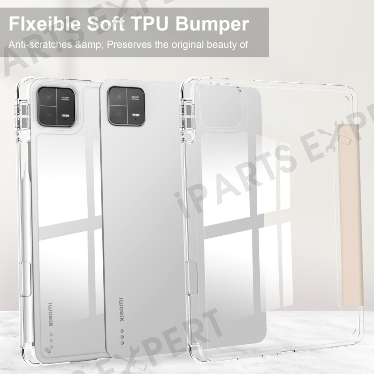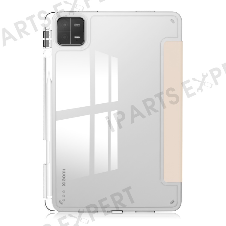 For Xiaomi Pad 6 / Pad 6 Pro Stand Tablet Case PU Leather + TPU + Acrylic Clear Smart Cover with Pen Slot - Apricot