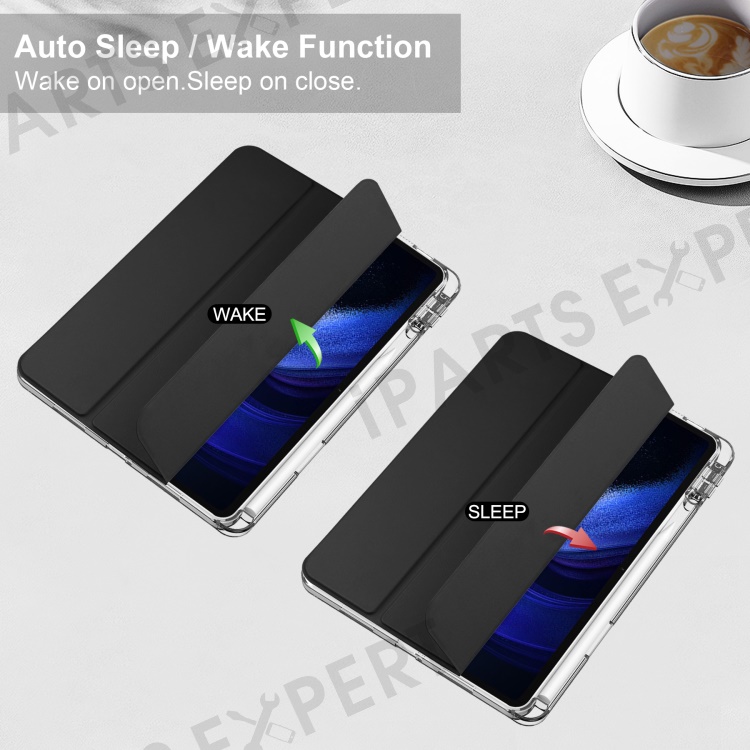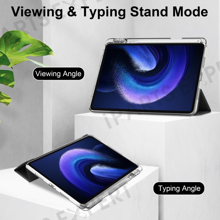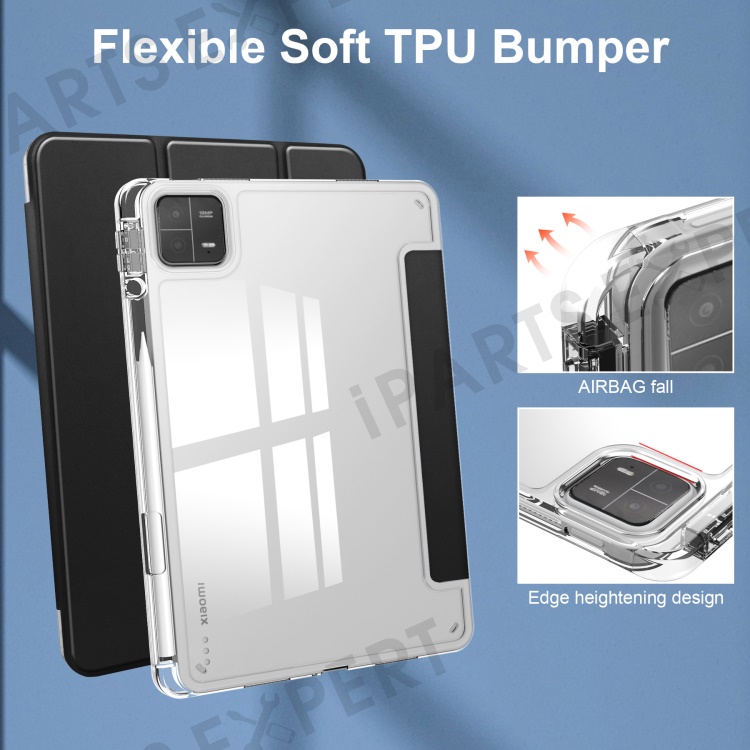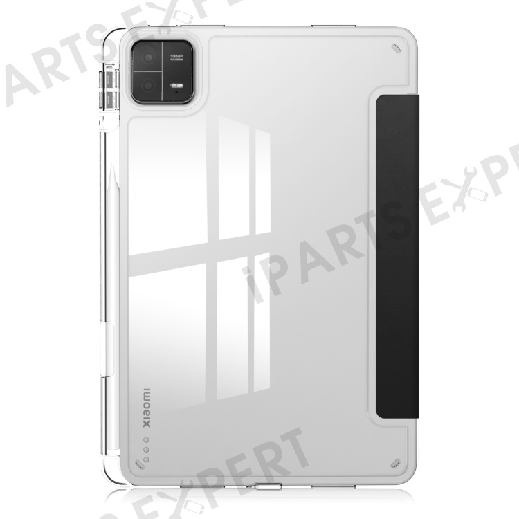 For Xiaomi Pad 6 / Pad 6 Pro Stand Tablet Case PU Leather + TPU + Acrylic Clear Smart Cover with Pen Slot - Black