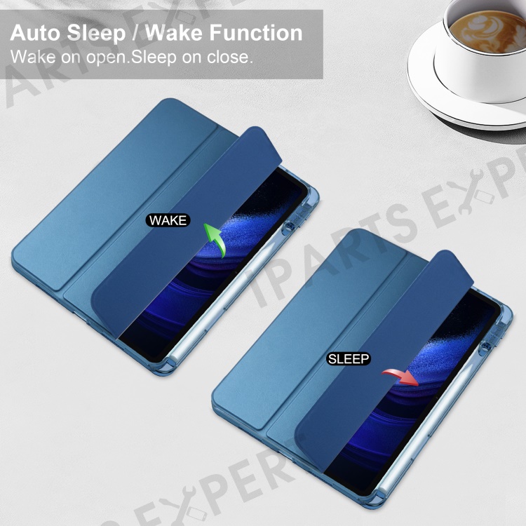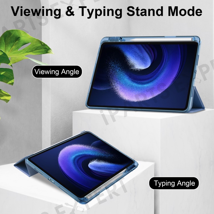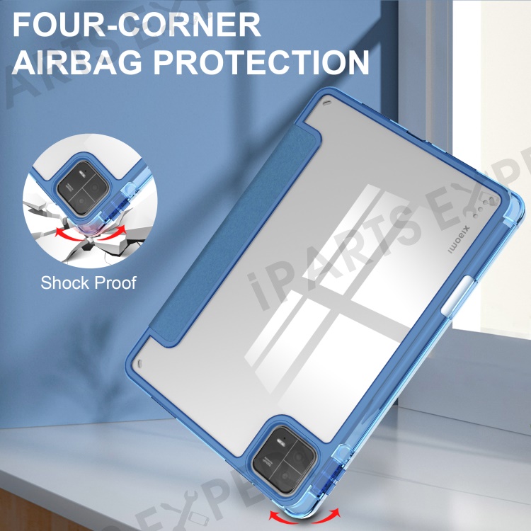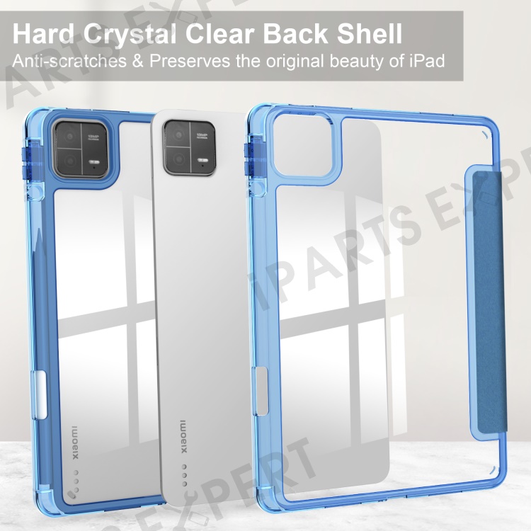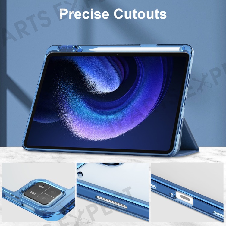 For Xiaomi Pad 6 / Pad 6 Pro Stand Tablet Case PU Leather + TPU + Acrylic Clear Smart Cover with Pen Slot - Blue