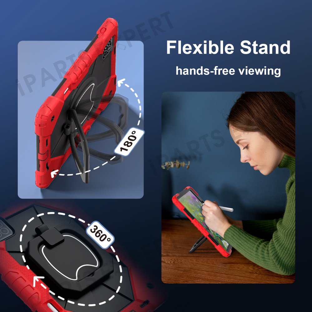 - 【360-Degree Kickstand】 Features an integrated 360-degree rotary kickstand, allowing hands-free viewing in both landscape and portrait modes, not only a kickstand, but also is a portable strap