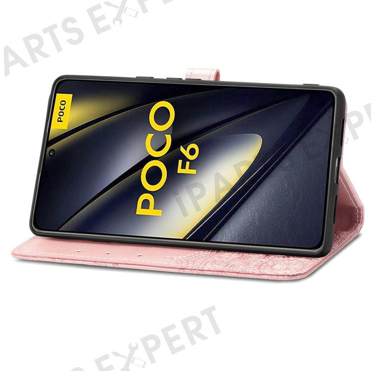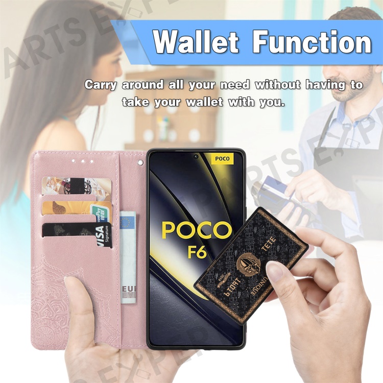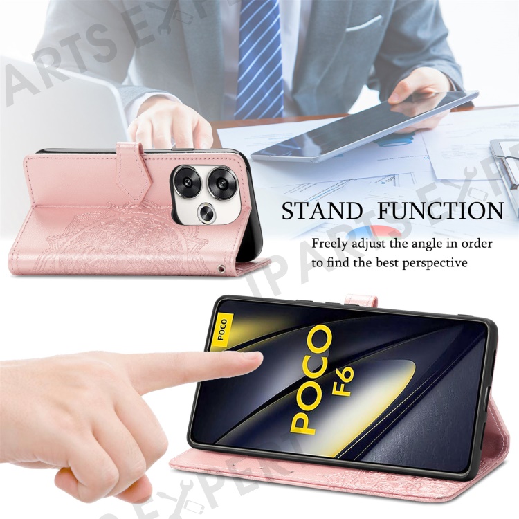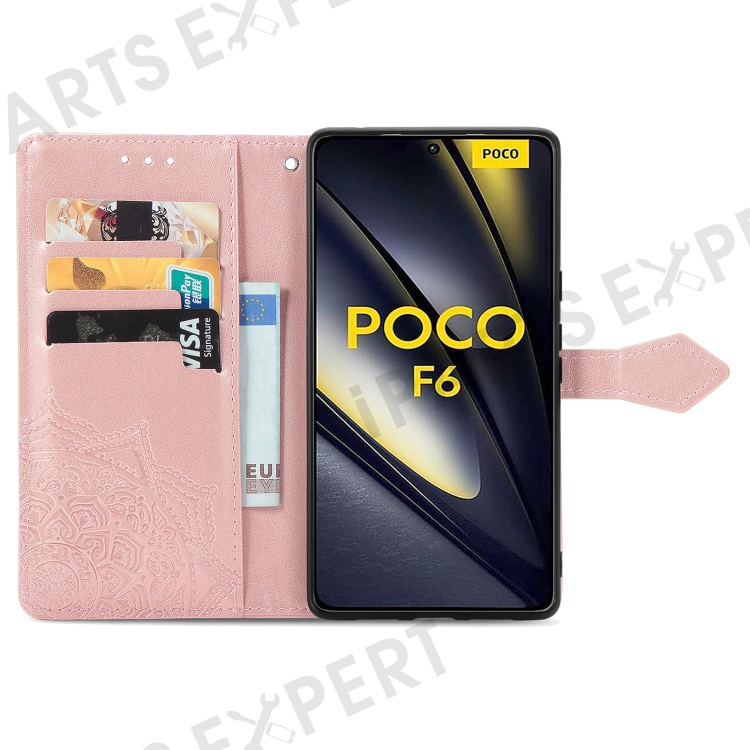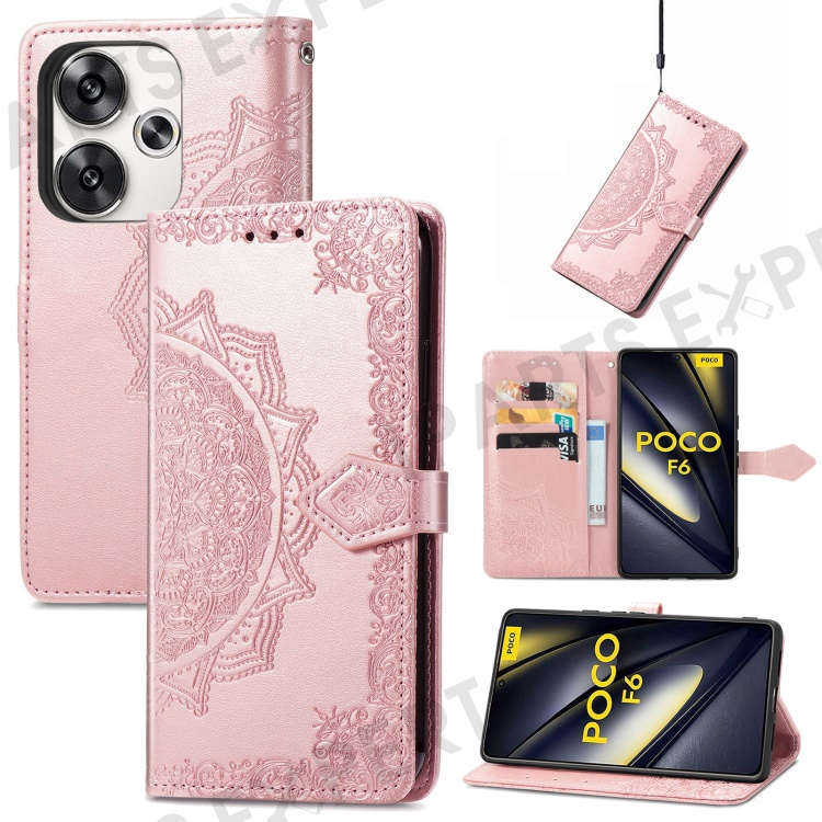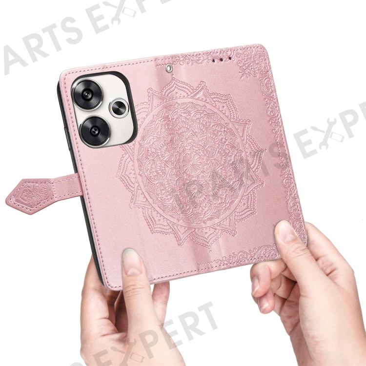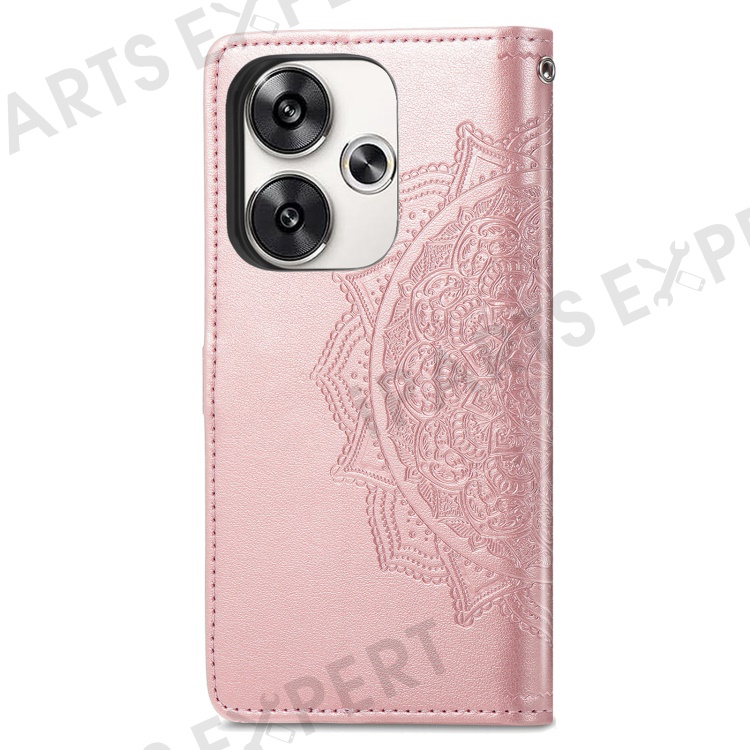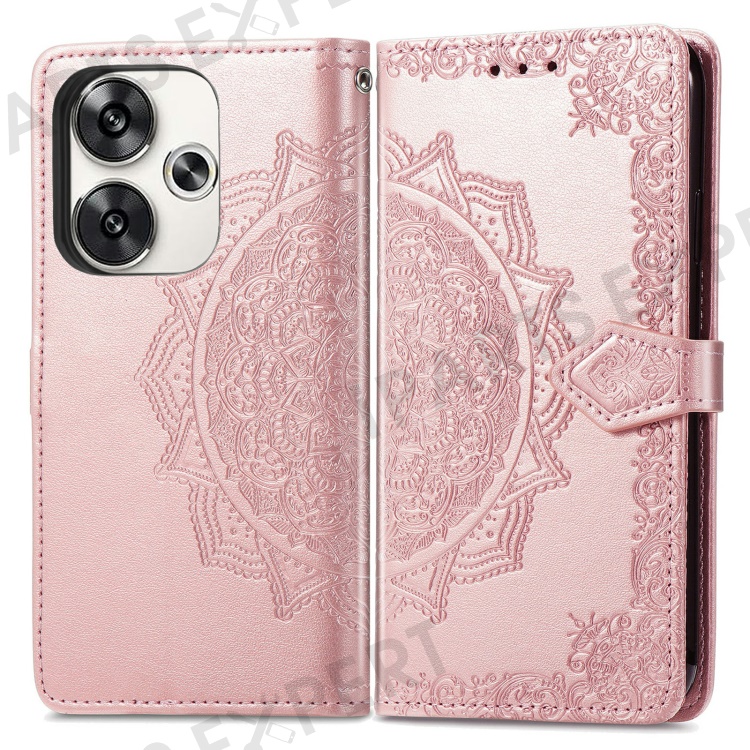 For Xiaomi Poco F6 5G / Redmi Turbo 3 5G Case Mandala Embossed Design Leather Wallet Phone Cover - Rose Gold