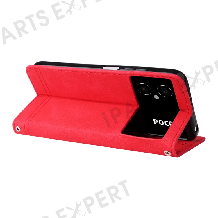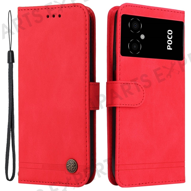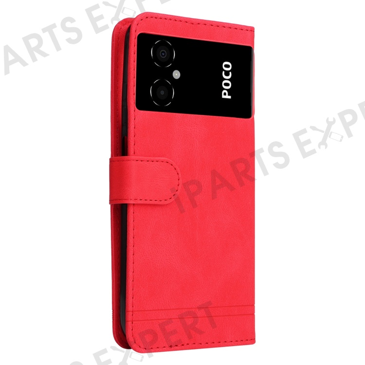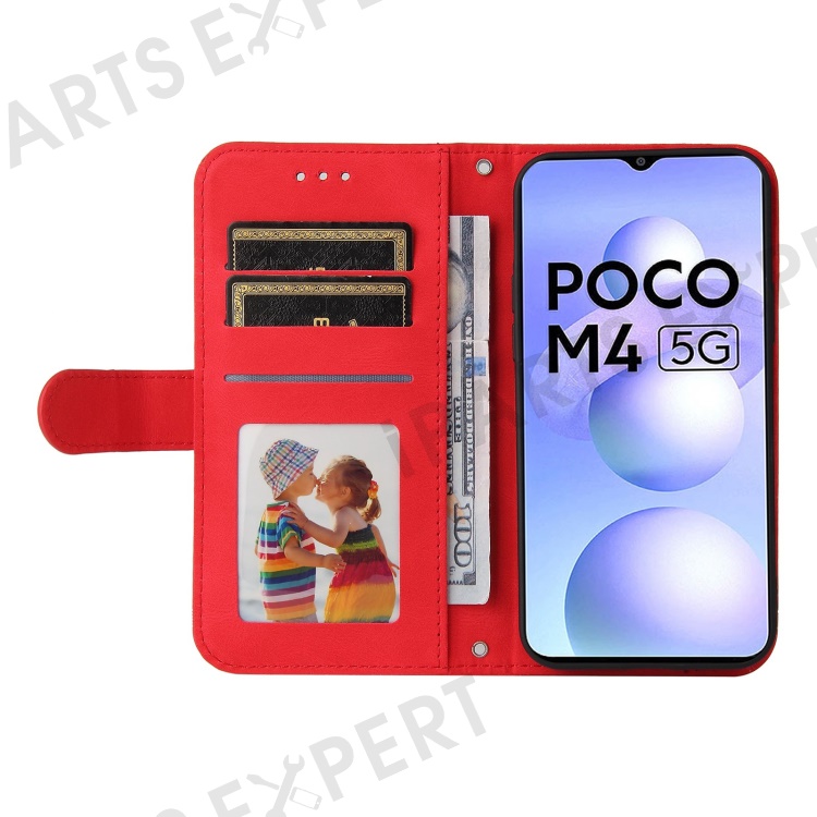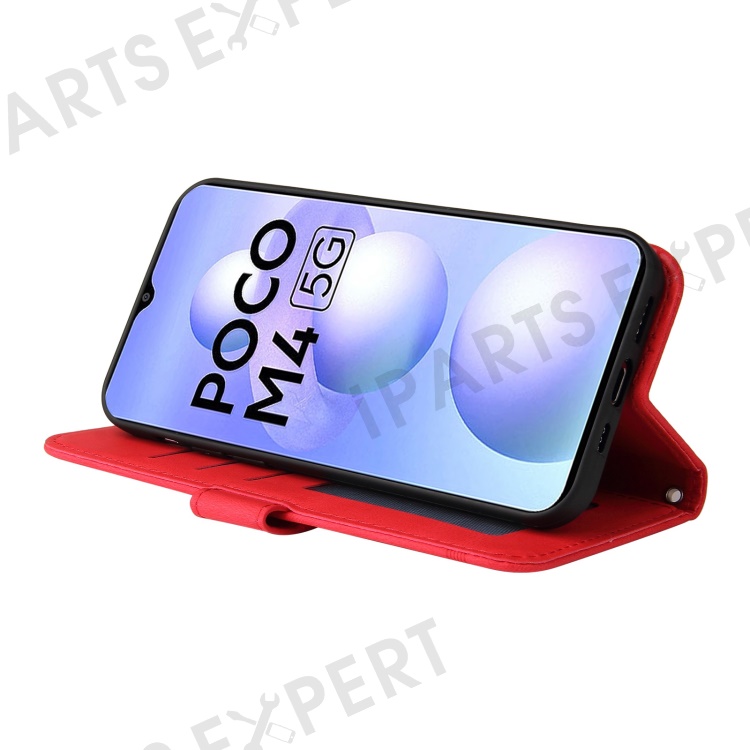 For Xiaomi Poco M4 5G / M5 (India) 4G Leather Wallet Cases Skin Touch Phone Cover Stand with Strap - Red