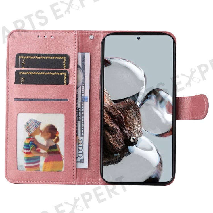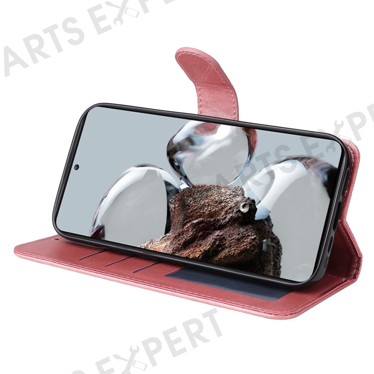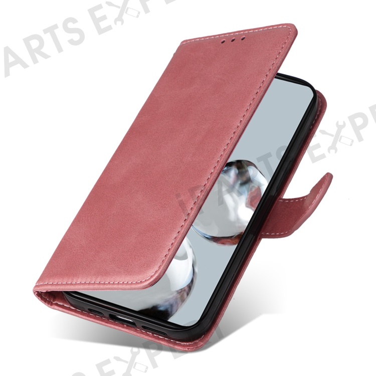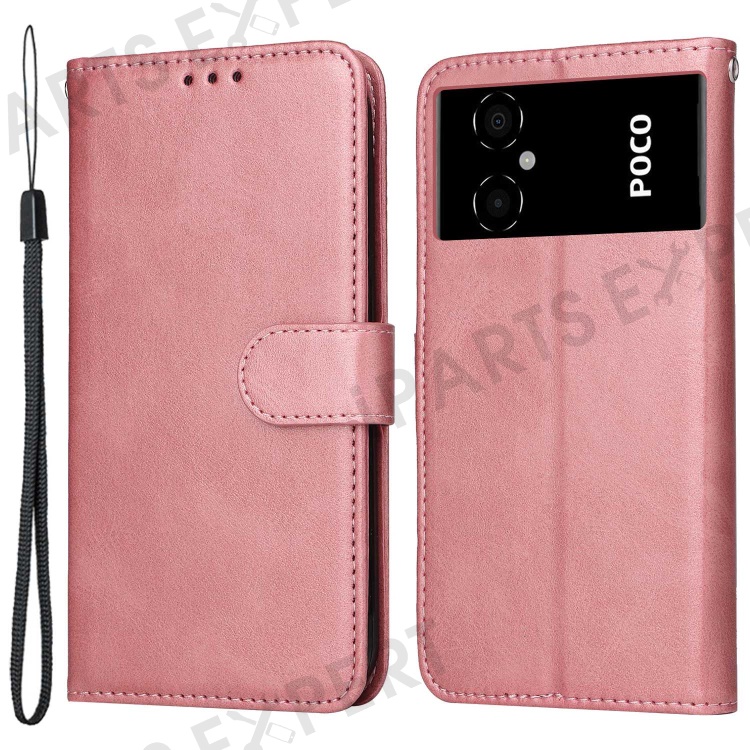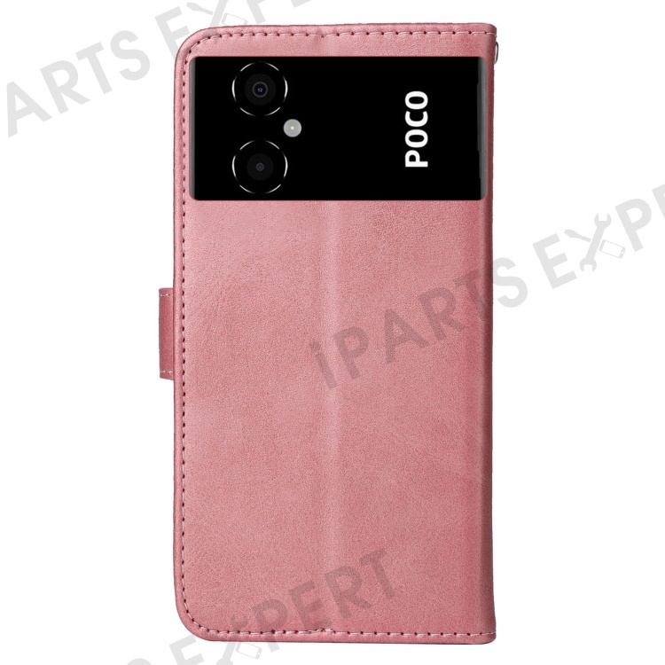 For Xiaomi Poco M4 5G / Poco M5 (India) 4G Calf Texture PU Leather Shockproof Cover Stand Wallet Cell Phone Case - Rose Gold