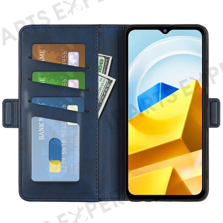 For Xiaomi Poco M5 4G Calf Textured PU Leather Flip Stand Phone Wallet Case Dual Magnetic Clasp Protective Shell - Blue