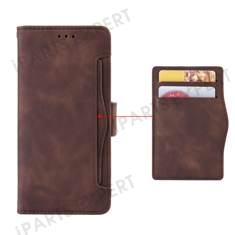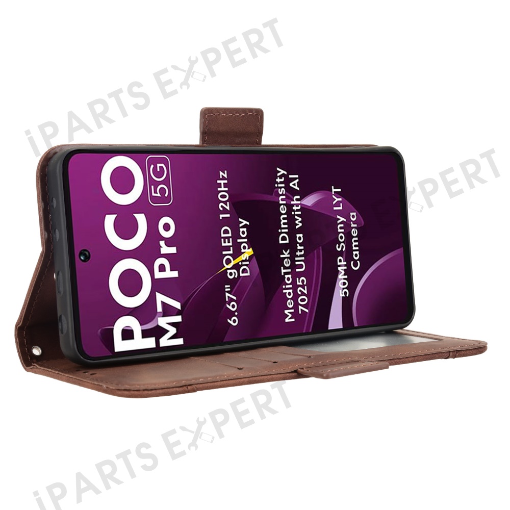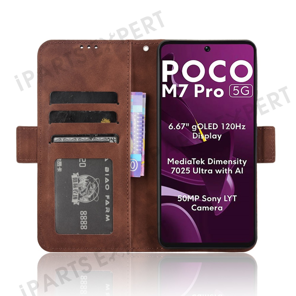 For Xiaomi Poco M7 Pro 5G Leather Case Phone Wallet Cover with Multiple Card Slots - Brown