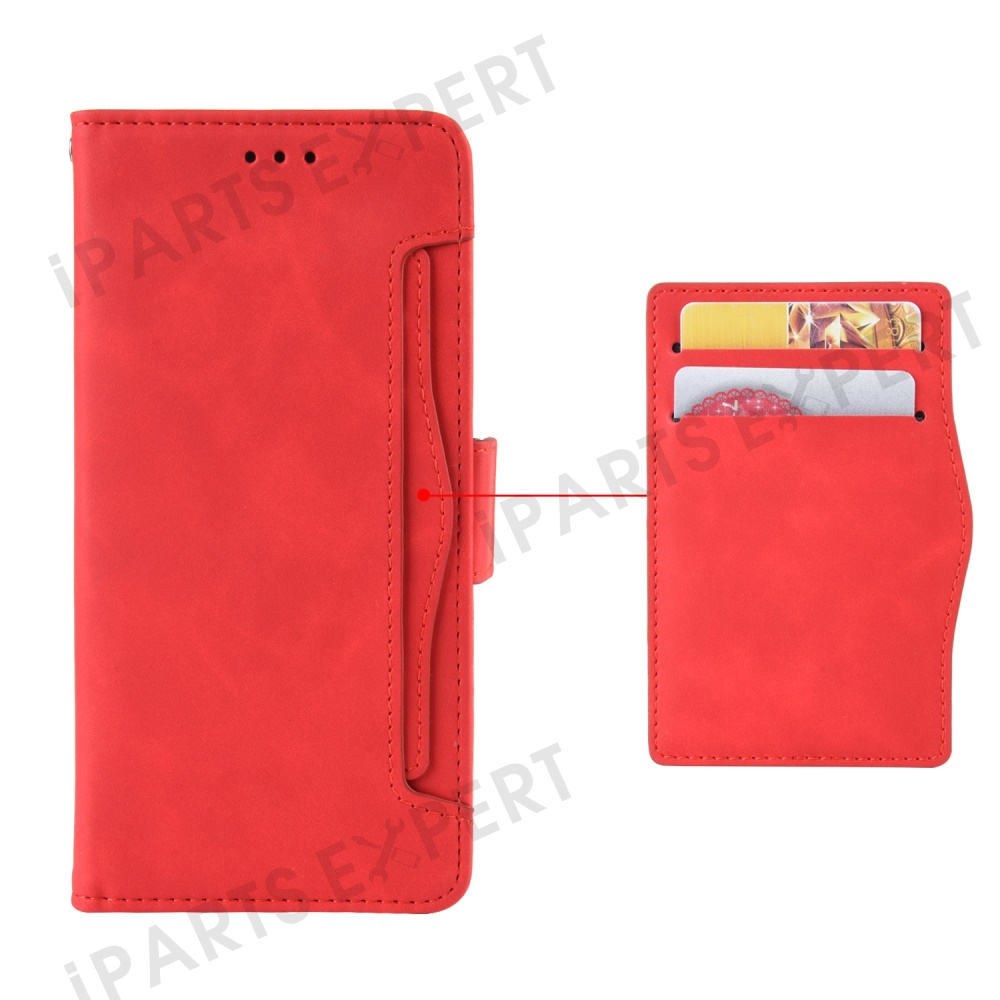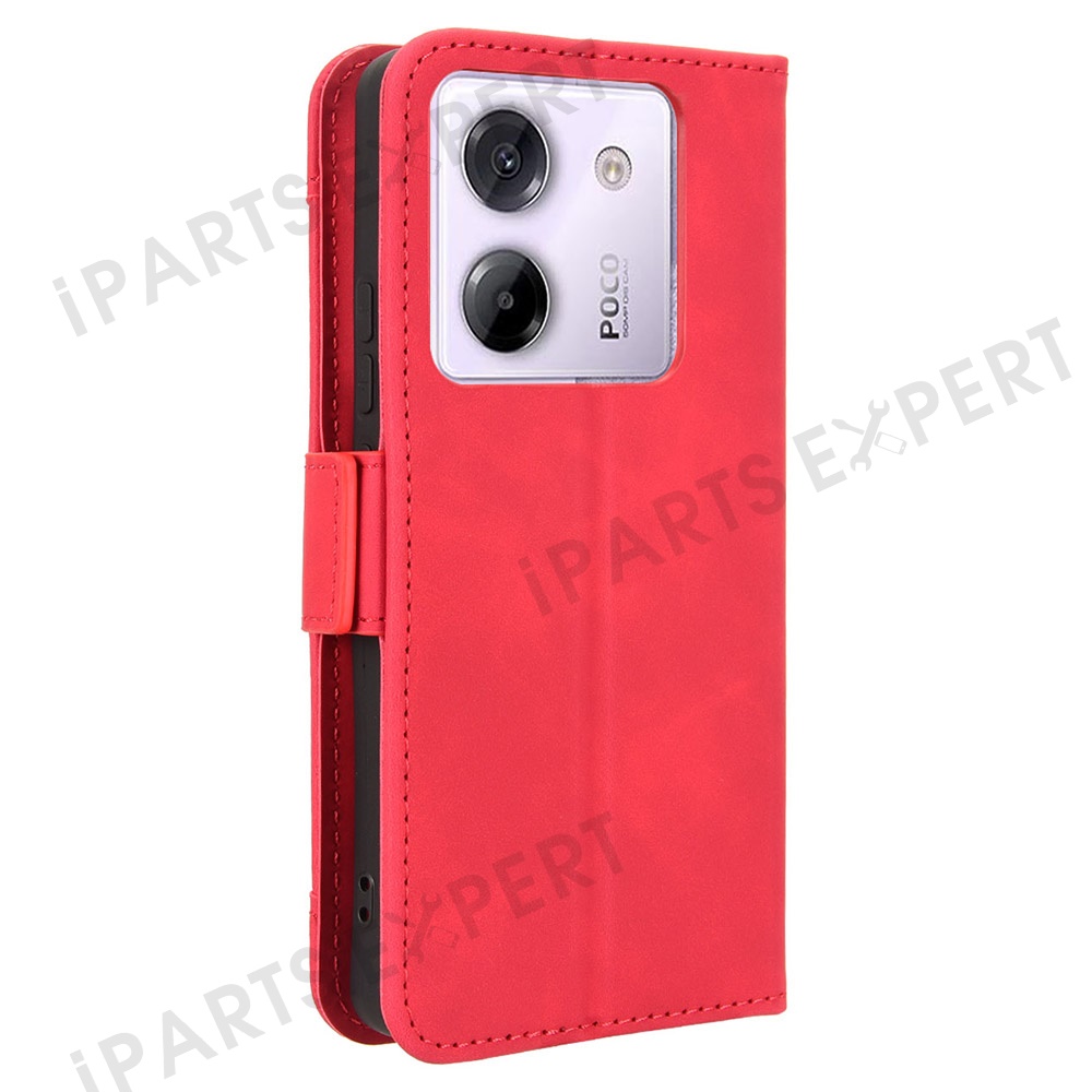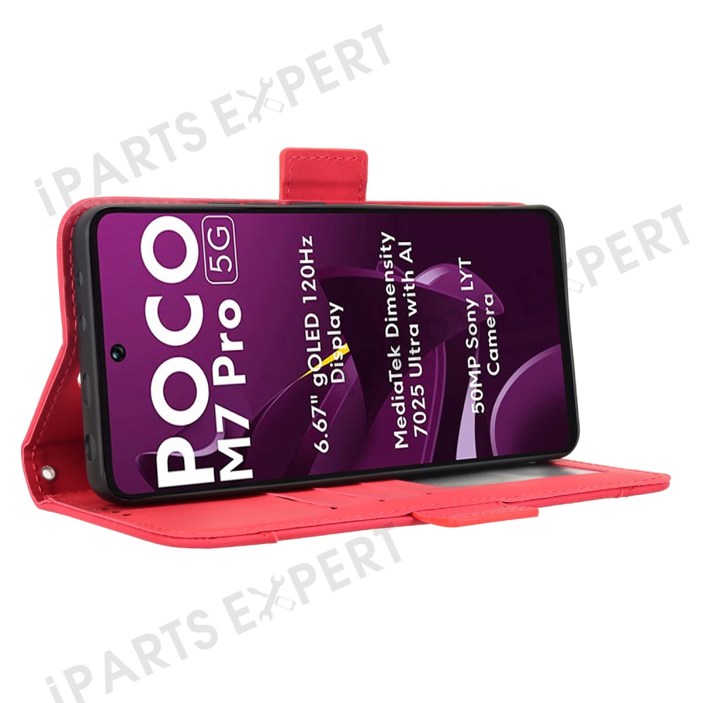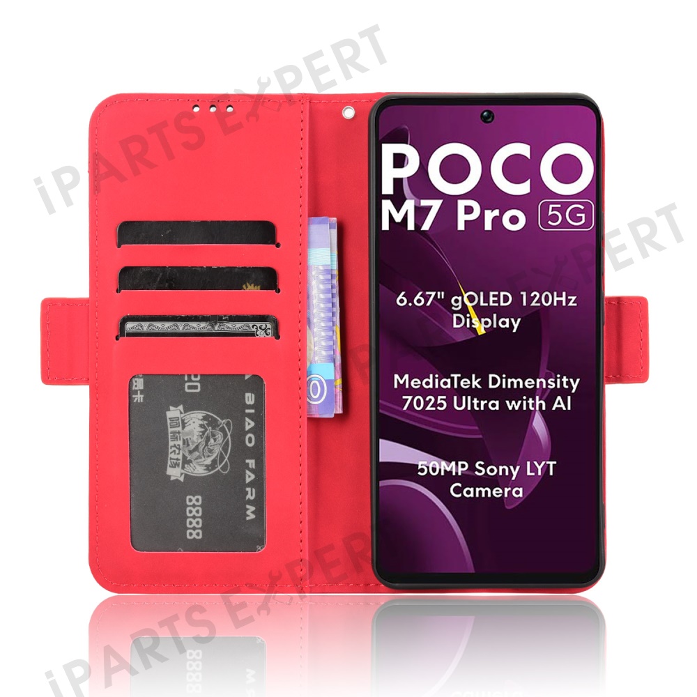 For Xiaomi Poco M7 Pro 5G Leather Case Phone Wallet Cover with Multiple Card Slots - Red