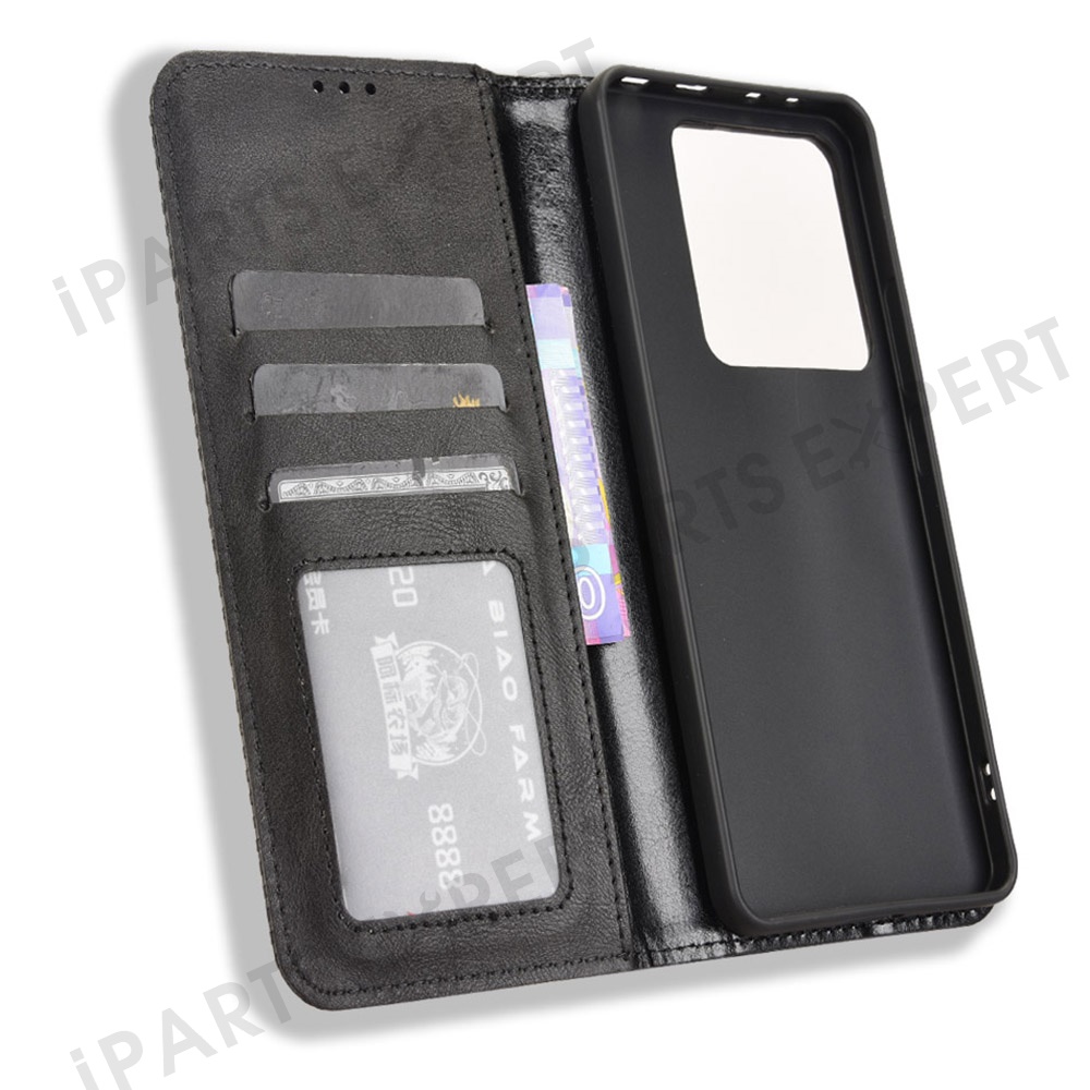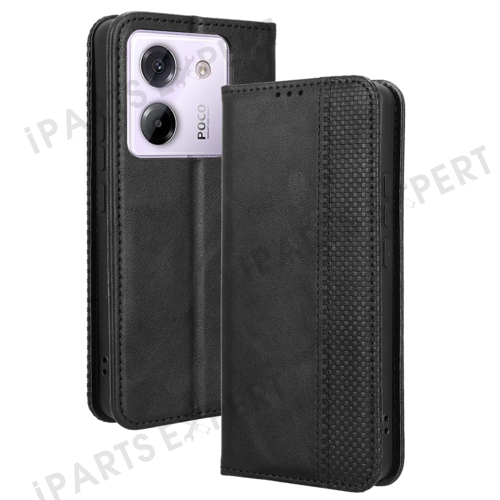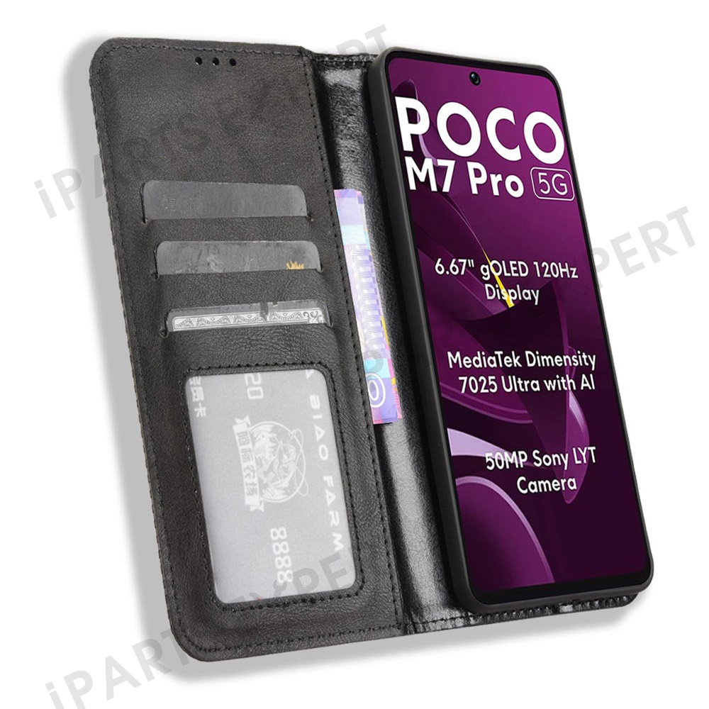 For Xiaomi Poco M7 Pro 5G Leather Case Wallet Stand Retro Texture Phone Cover - Black