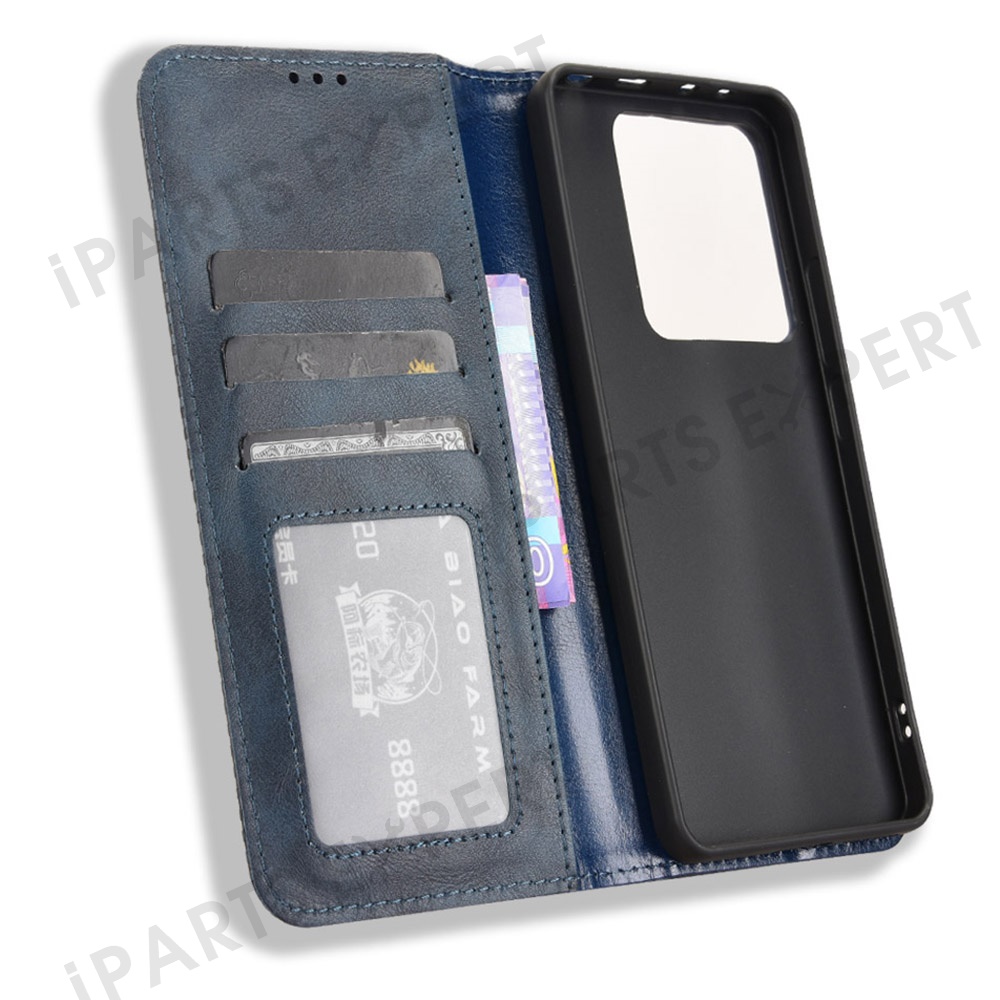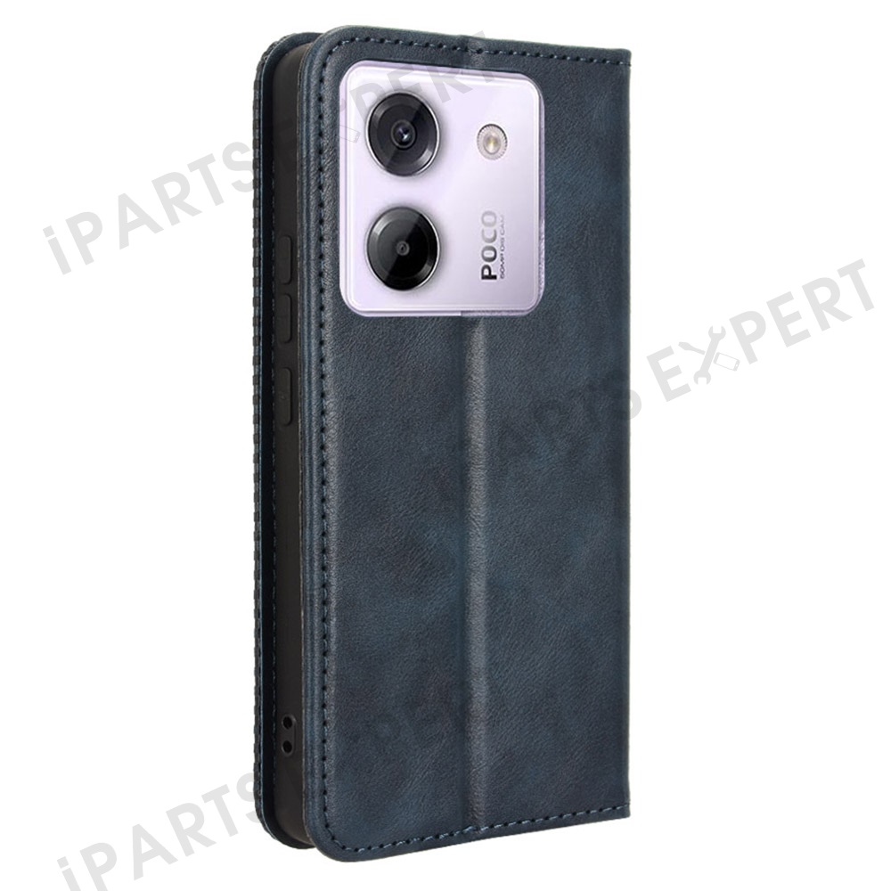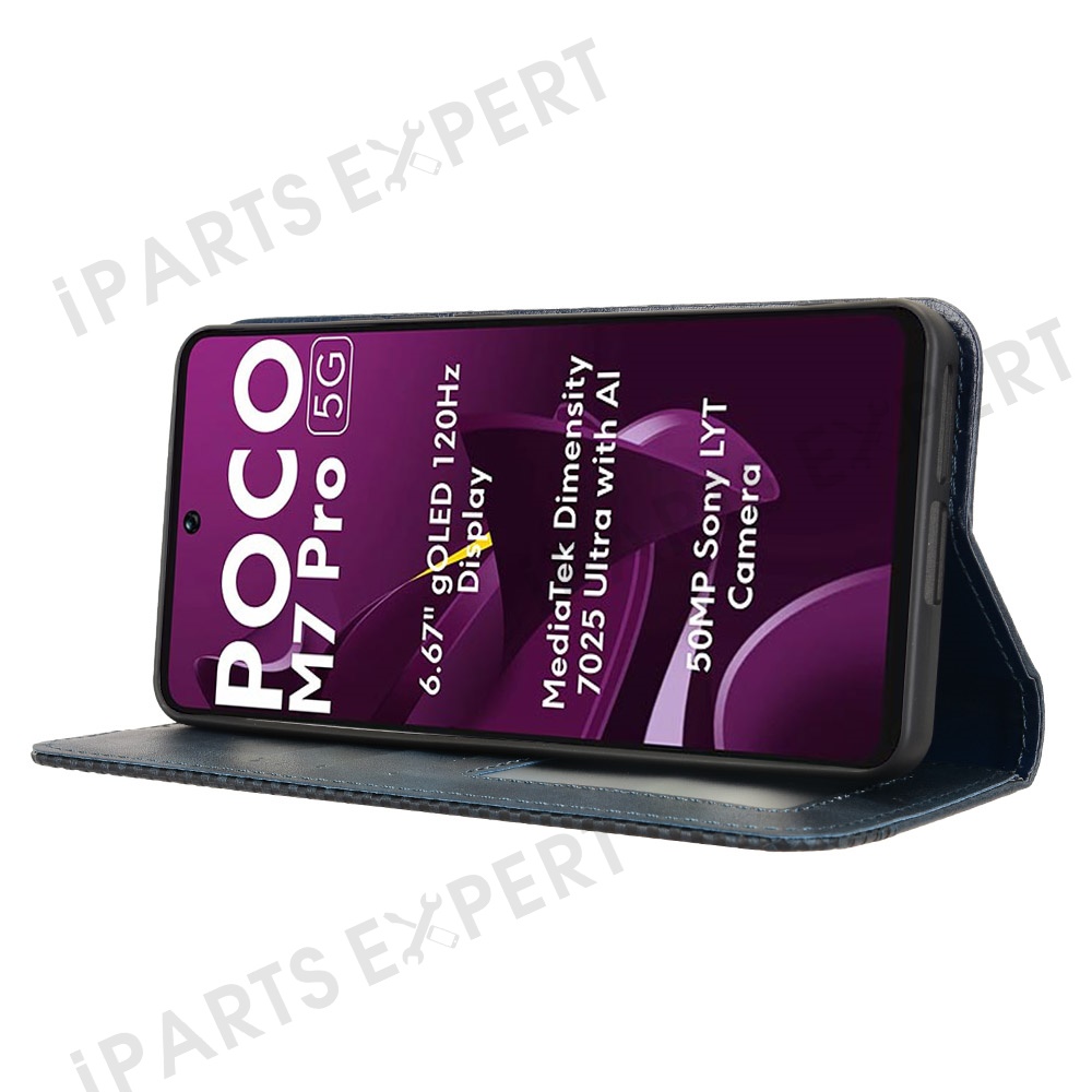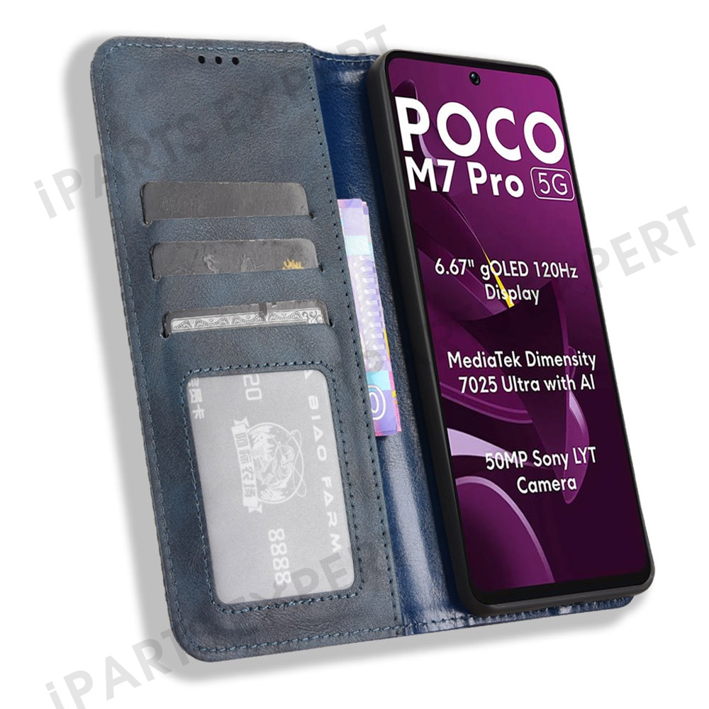 For Xiaomi Poco M7 Pro 5G Leather Case Wallet Stand Retro Texture Phone Cover - Blue