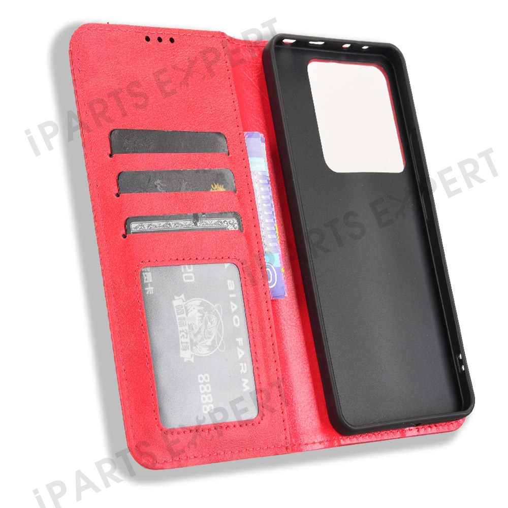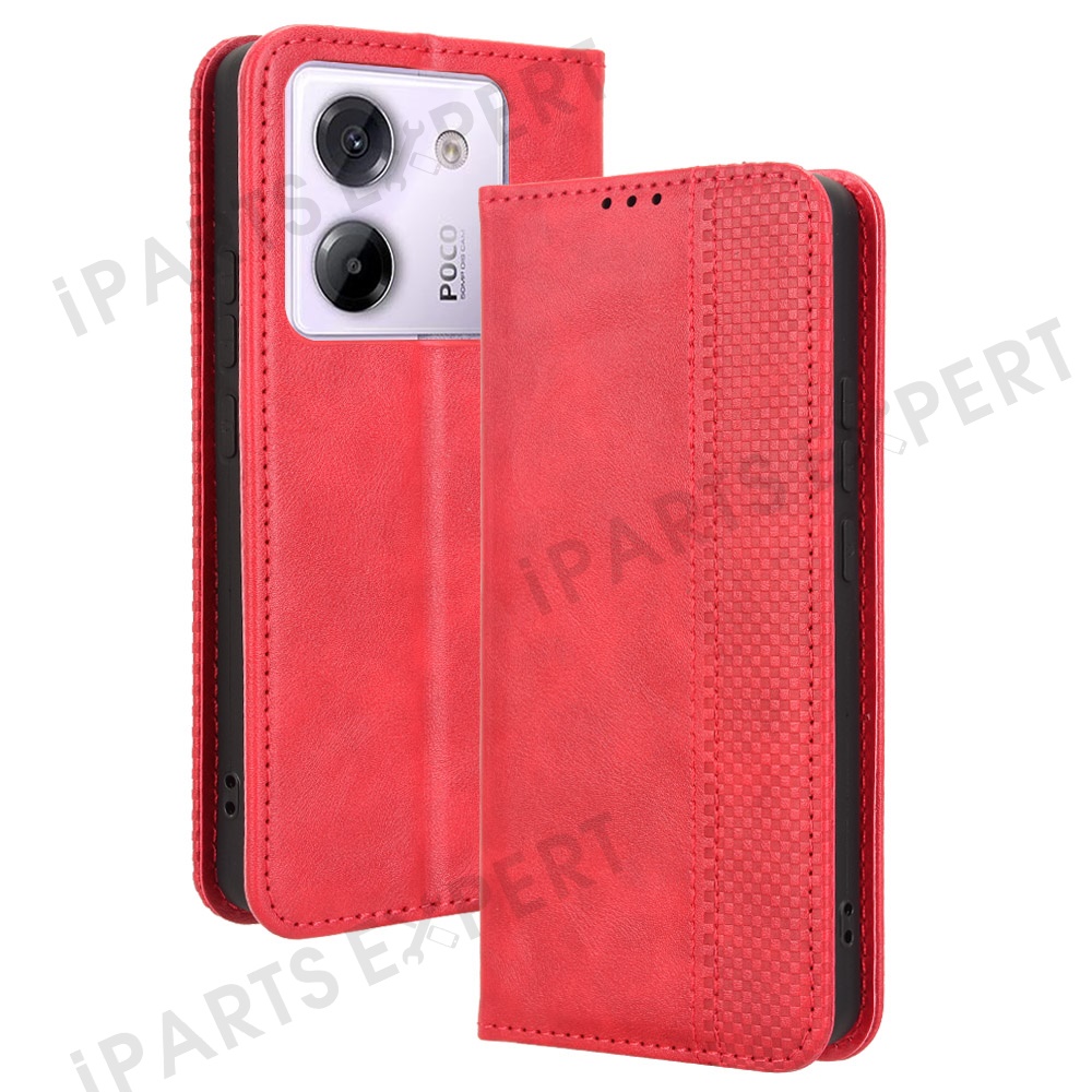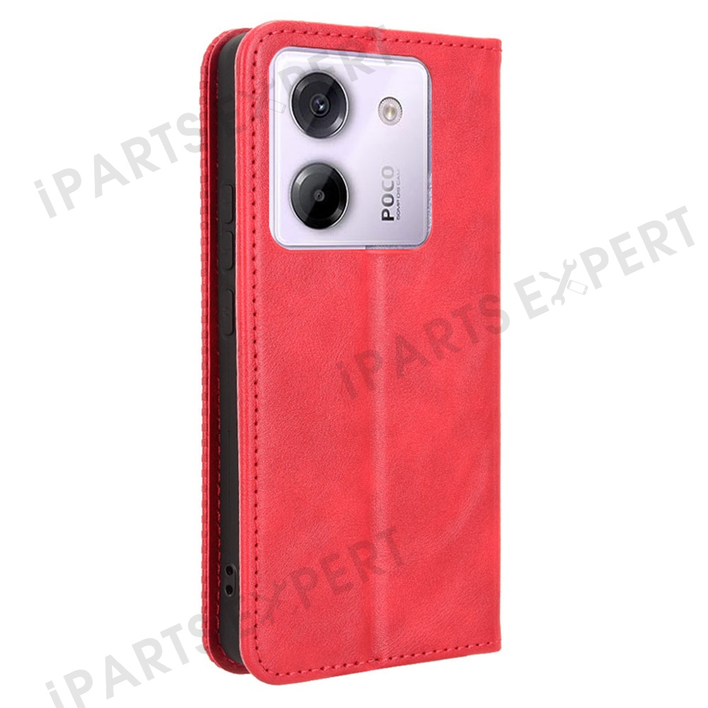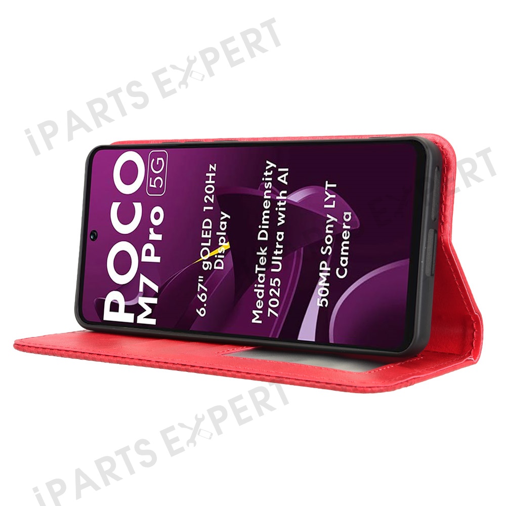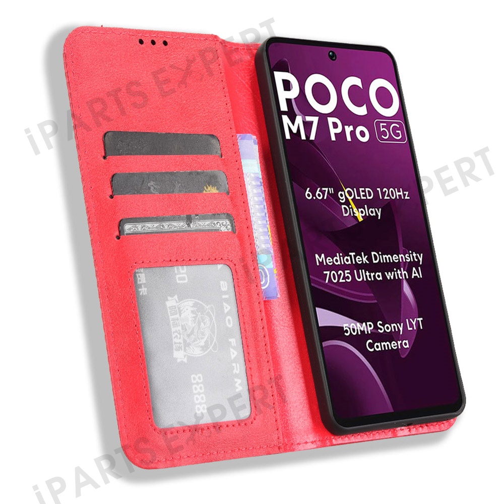 For Xiaomi Poco M7 Pro 5G Leather Case Wallet Stand Retro Texture Phone Cover - Red