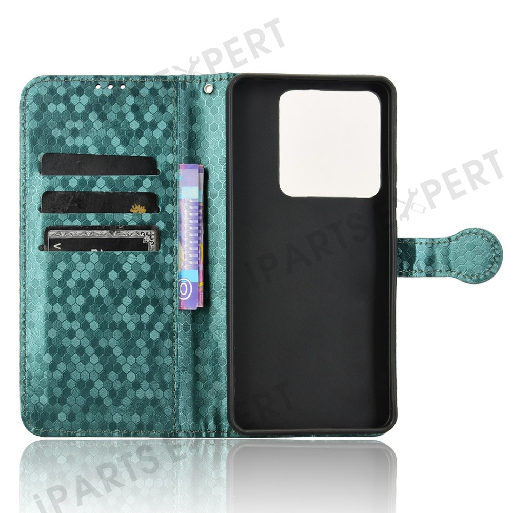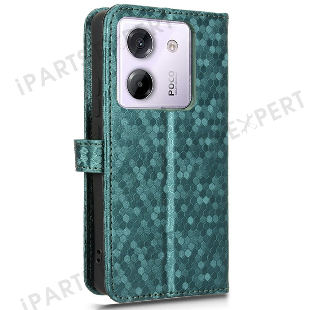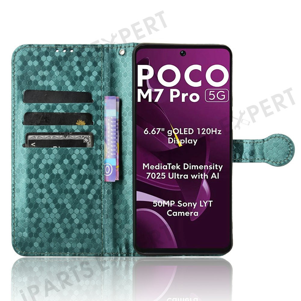For Xiaomi Poco M7 Pro 5G / Redmi Note 14 5G Wallet Case Dot Pattern Imprint PU Leather Phone Cover - Green