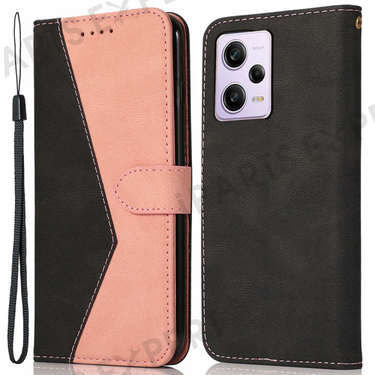 For Xiaomi Poco X5 Pro 5G / Redmi Note 12 Pro Speed 5G / 12 Pro 5G Anti-drop Stand Case Splicing PU Leather Wallet Phone Cover - Black / Rose Gold