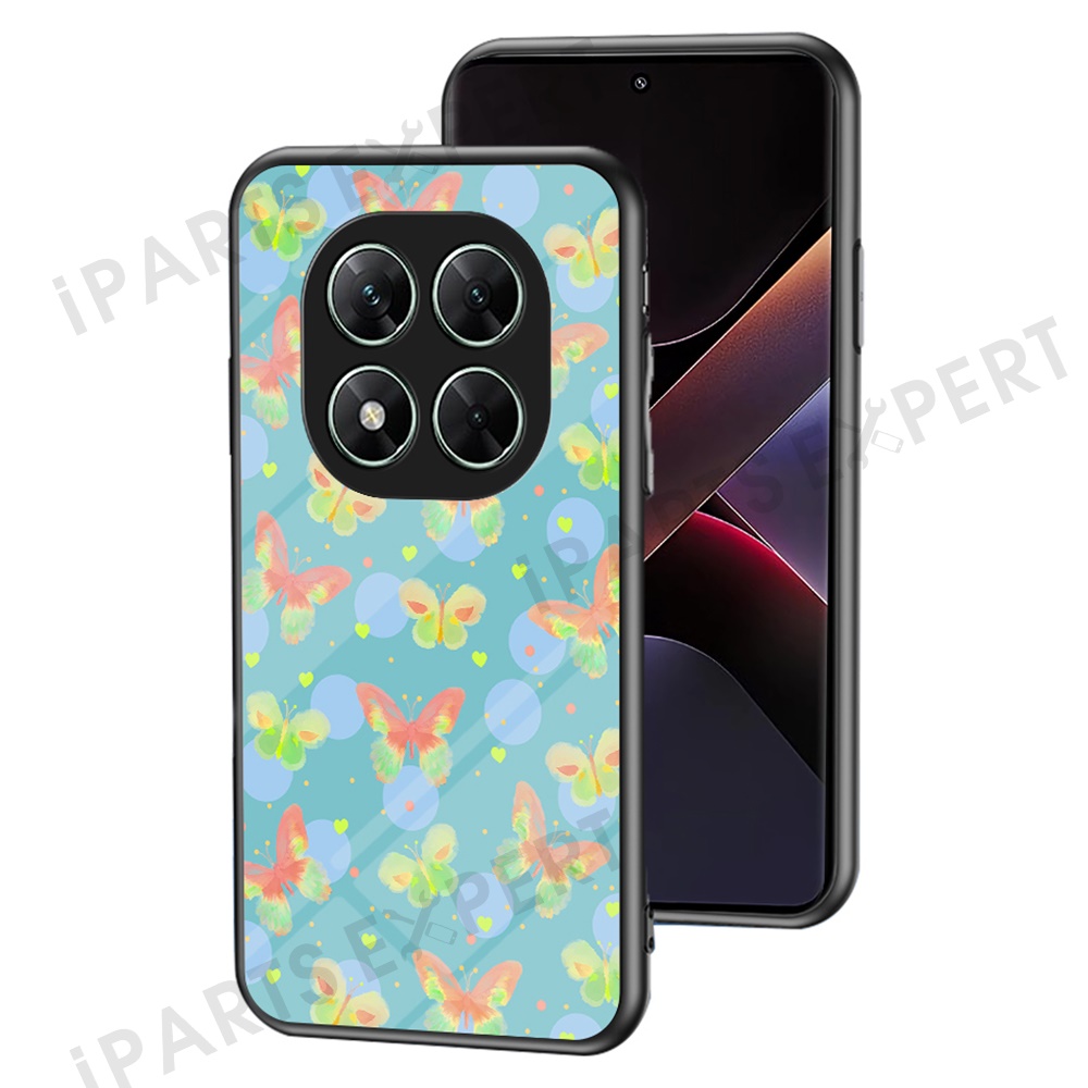 For Xiaomi Poco X7 5G / Redmi Note 14 Pro 5G Case TPU + Tempered Glass Phone Back Cover Butterfly Pattern - Lush Butterfly