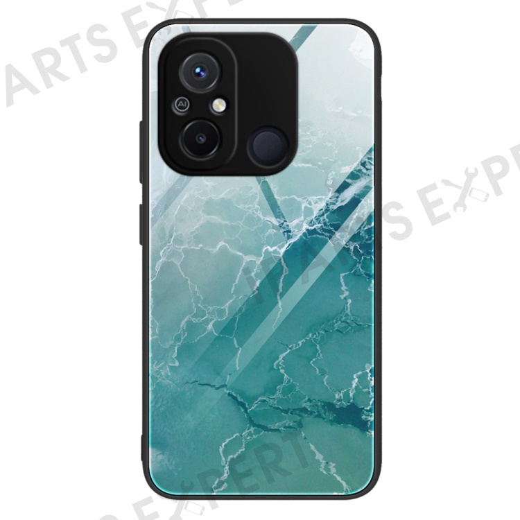 For Xiaomi Redmi 11A 4G / 12C 4G Phone Case Marble Pattern Tempered Glass + PC + TPU Protective Phone Cover - DL04