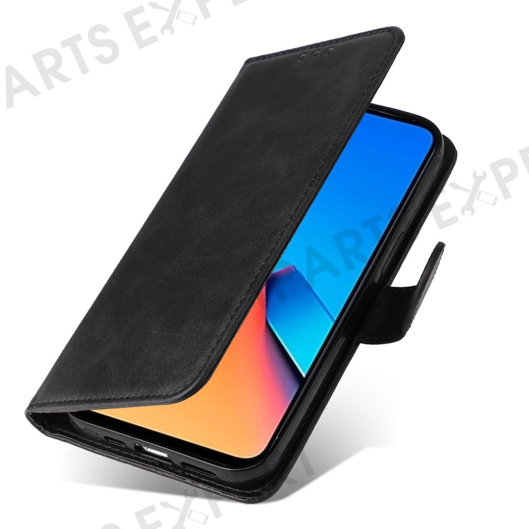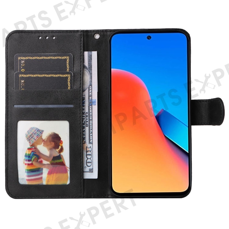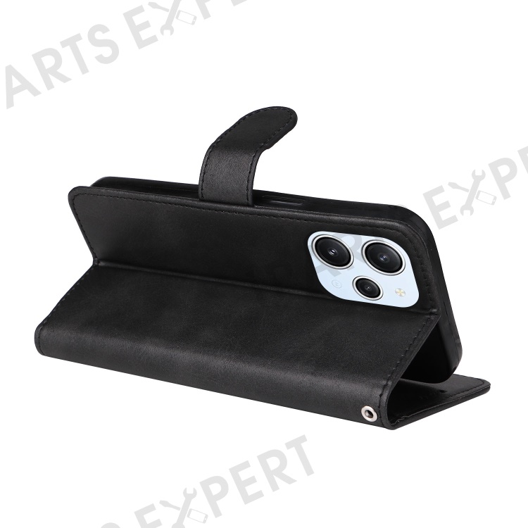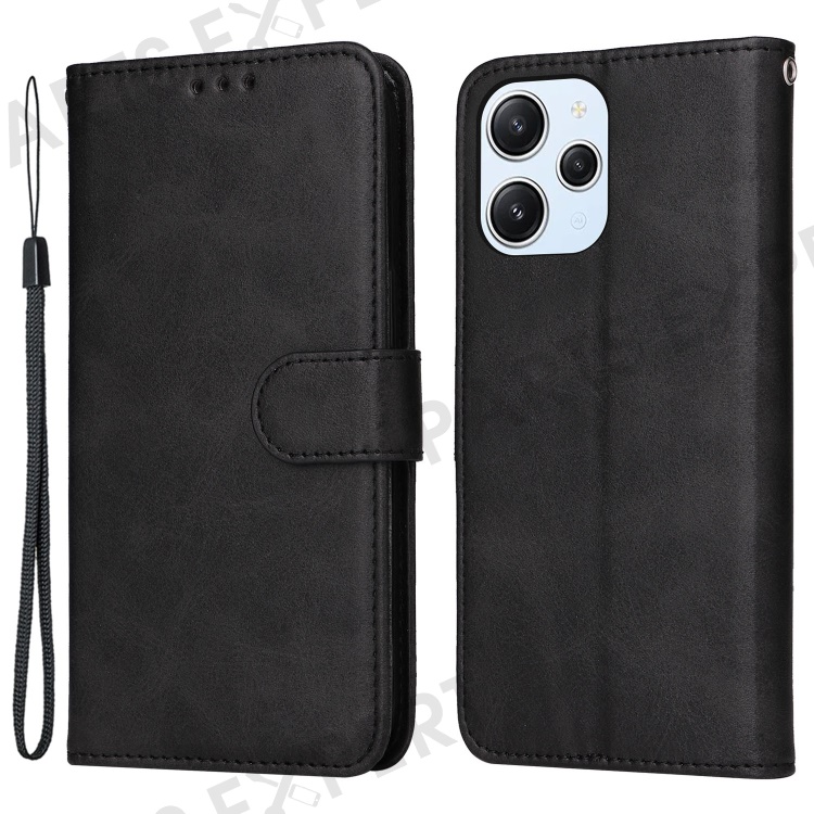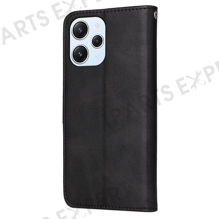 For Xiaomi Redmi 12 4G Anti-Scratch Phone Case Calf Texture Wallet Phone Case Stand Flip Phone Shell Cover - Black