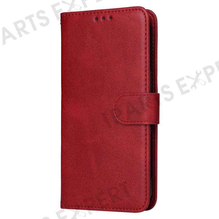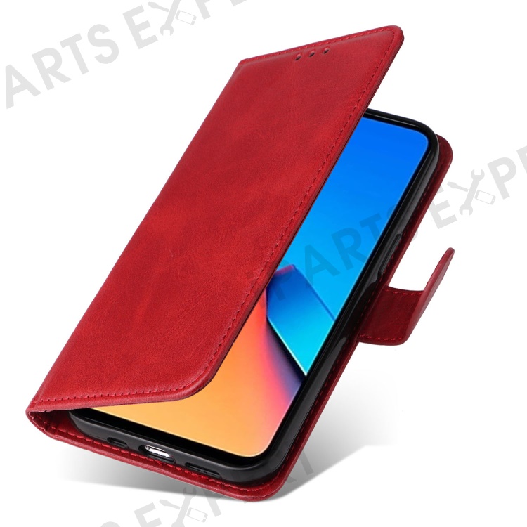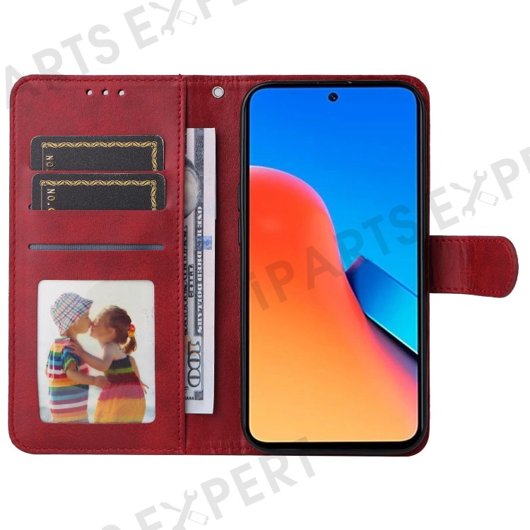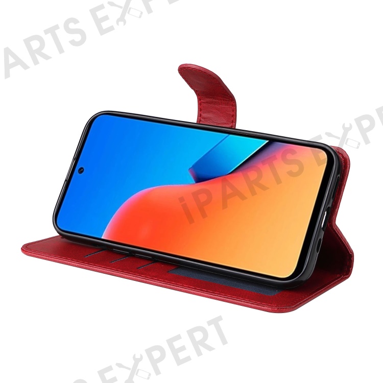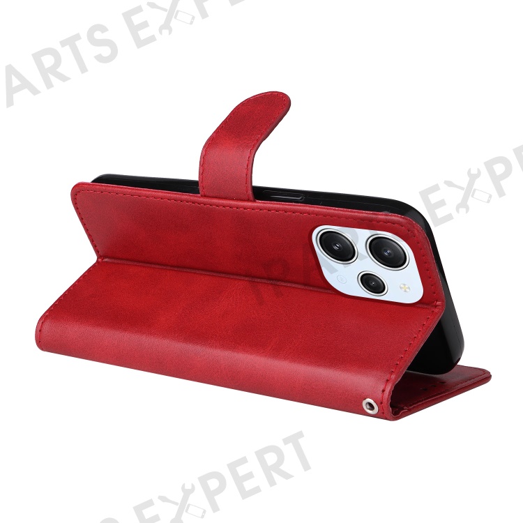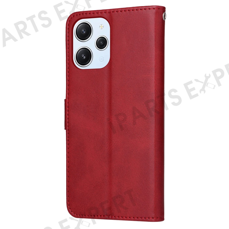 For Xiaomi Redmi 12 4G Anti-Scratch Phone Case Calf Texture Wallet Phone Case Stand Flip Phone Shell Cover - Red