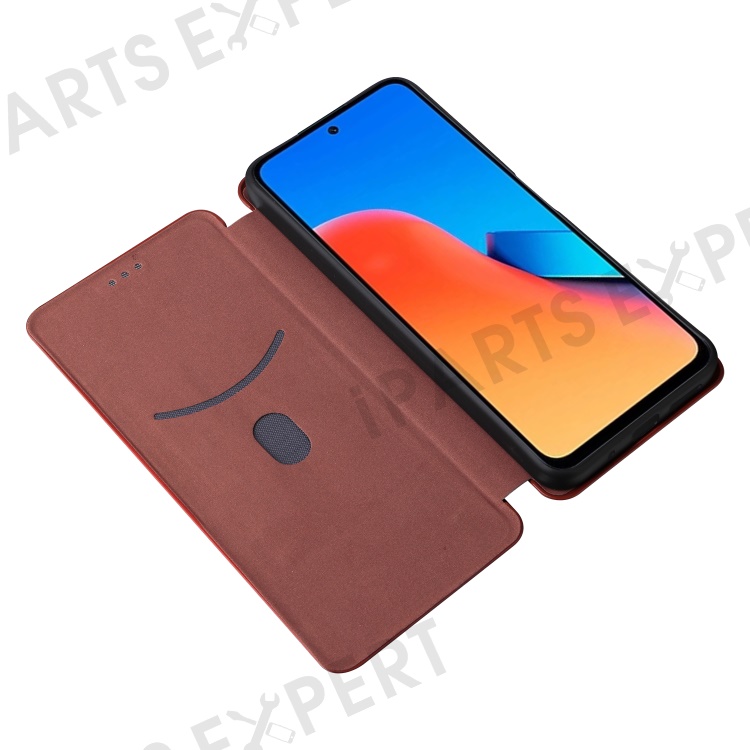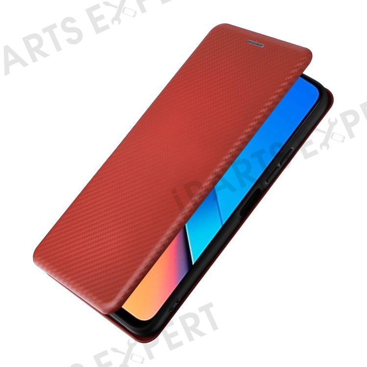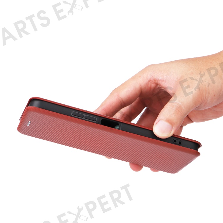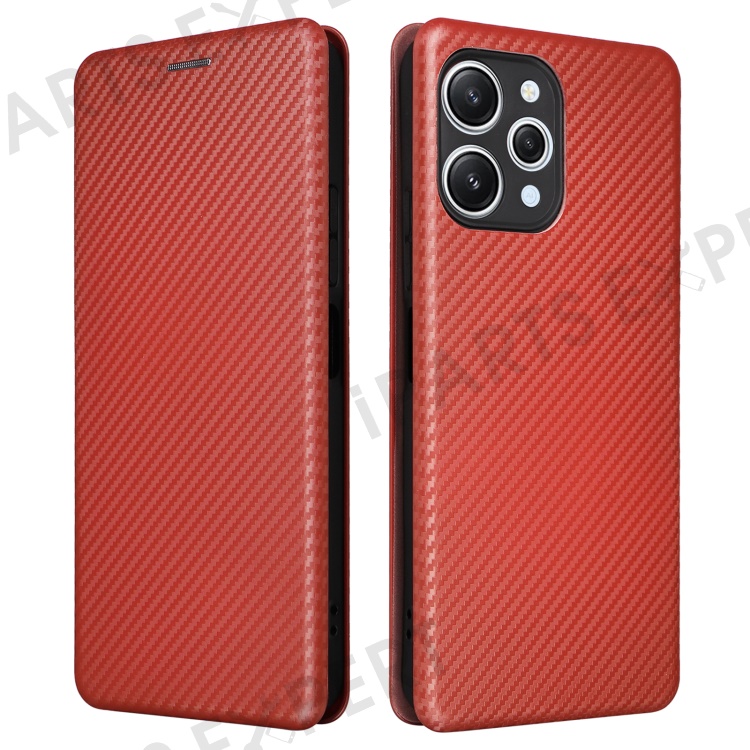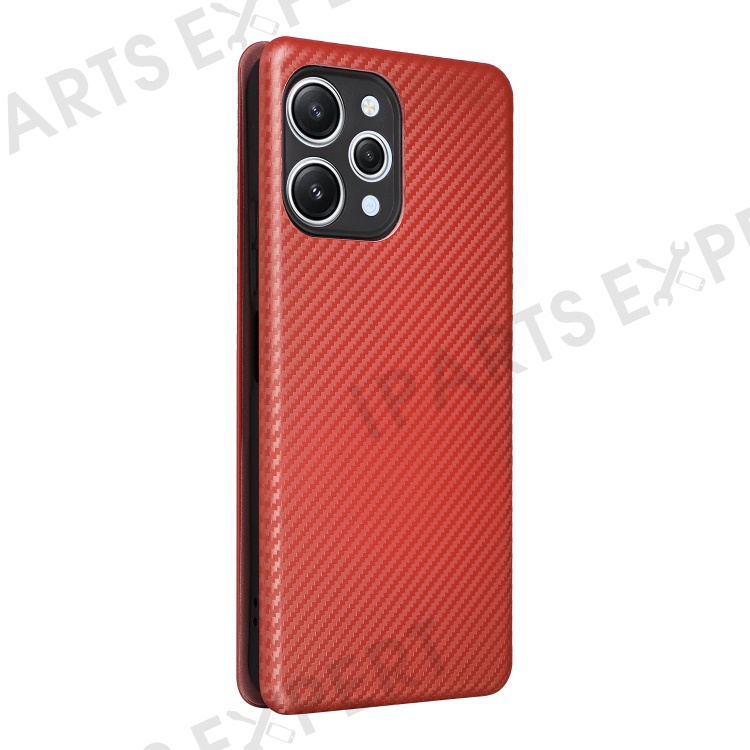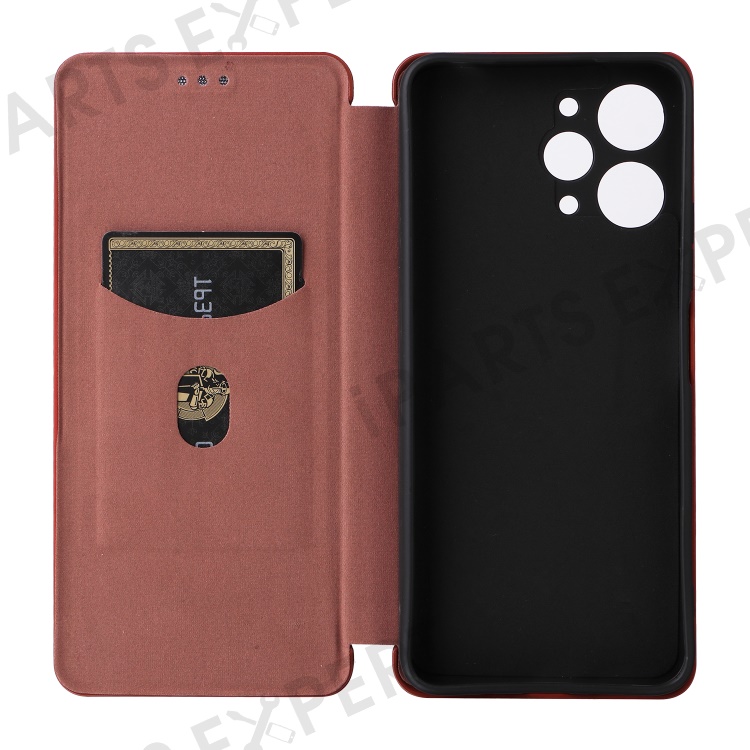 For Xiaomi Redmi 12 4G Card Holder Phone Leather Case Carbon Fiber Texture Stand Cover - Brown