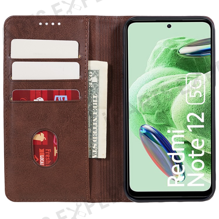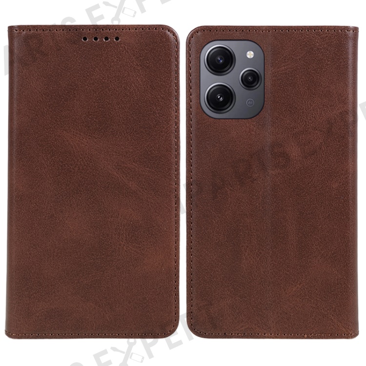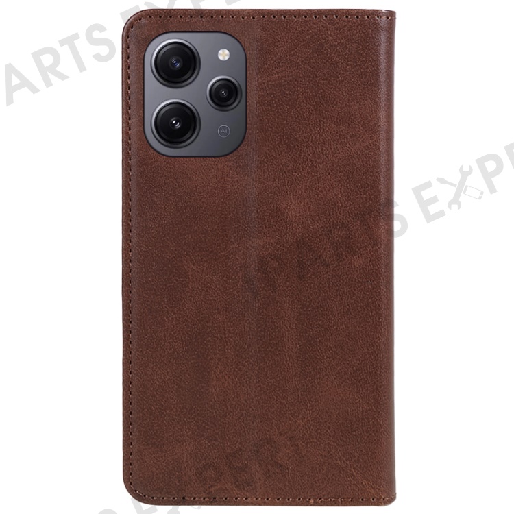 For Xiaomi Redmi 12 4G Wallet Case Calf Texture PU Leather Stand Flip Magnetic Closure Phone Cover - Brown