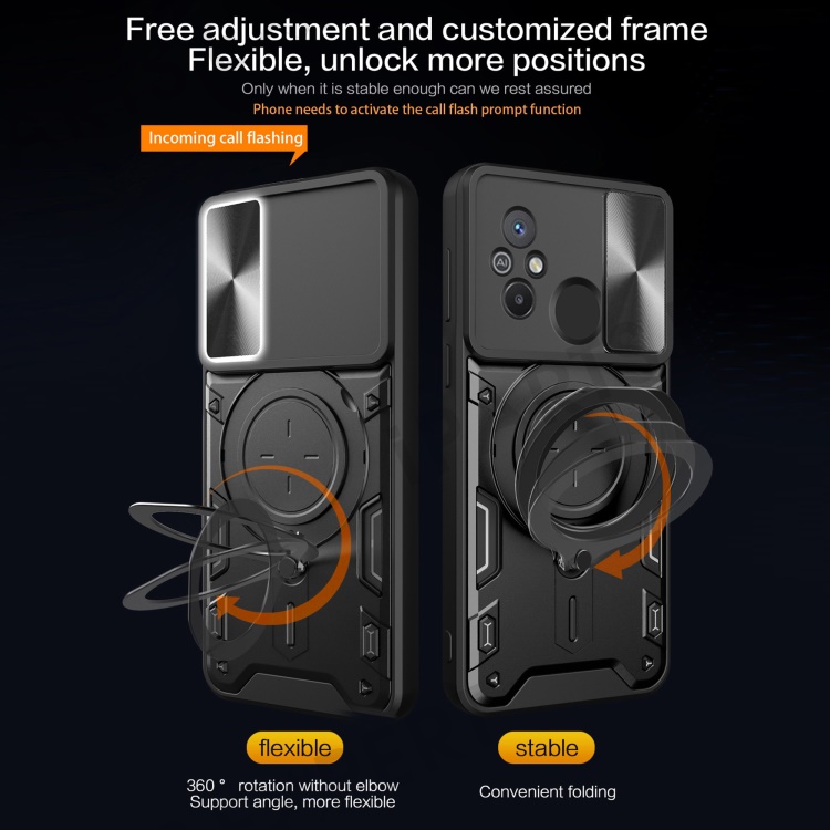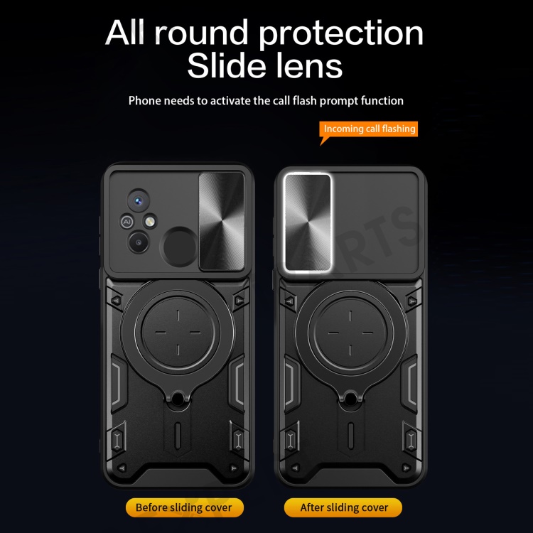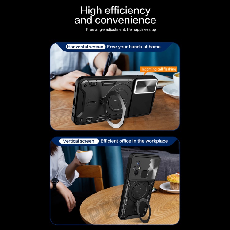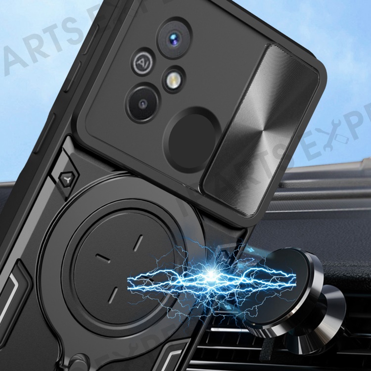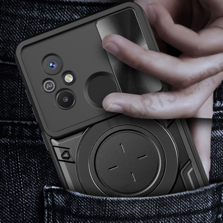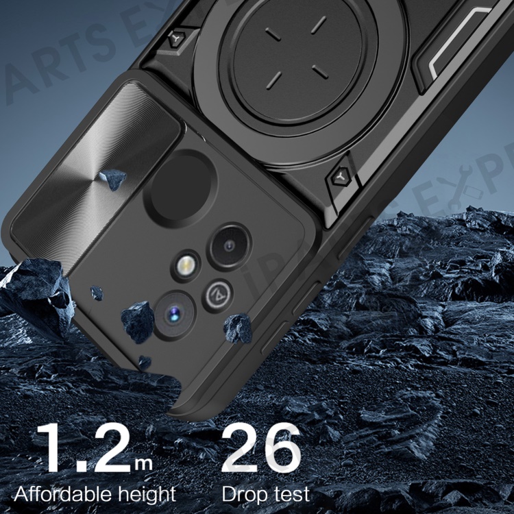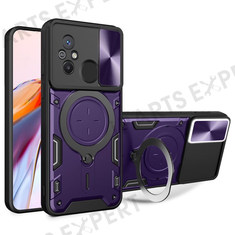 For Xiaomi Redmi 12C 4G / 11A 4G Slide Camera Lid PC+TPU Cover Ring Kickstand Anti-drop Phone Case - Purple