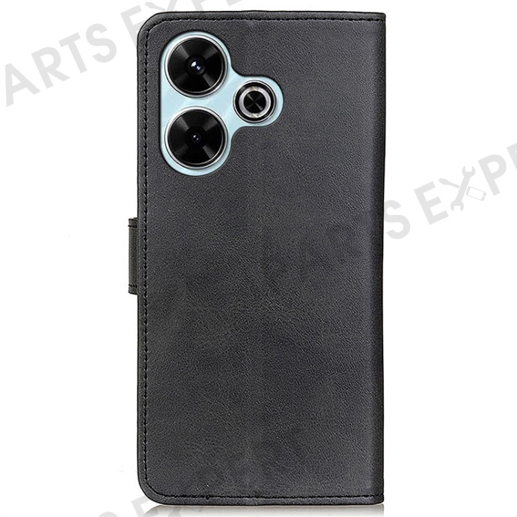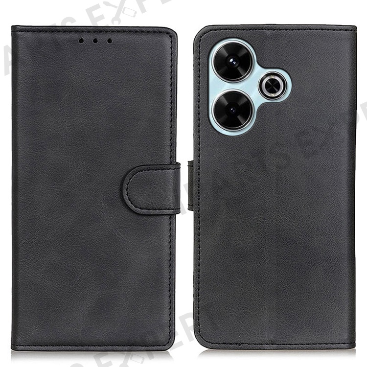 For Xiaomi Redmi 13 5G / 13 4G Case Folio Stand View Leather Phone Cover Cowhide Texture - Black