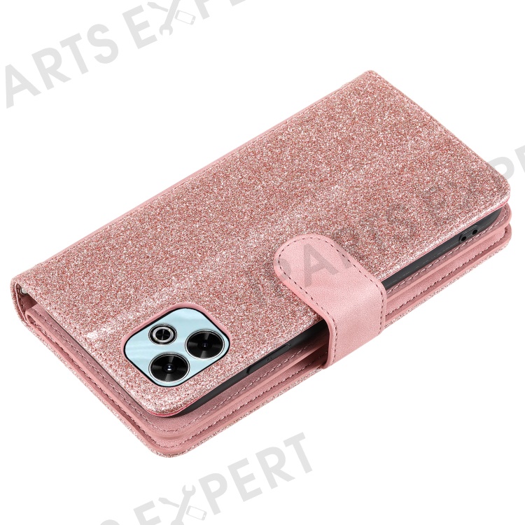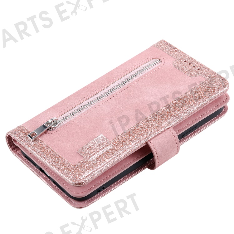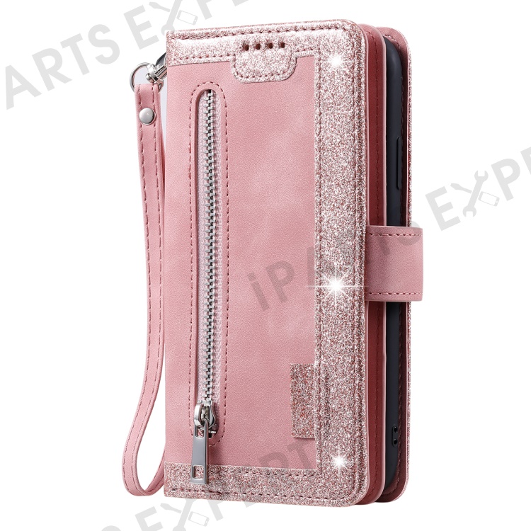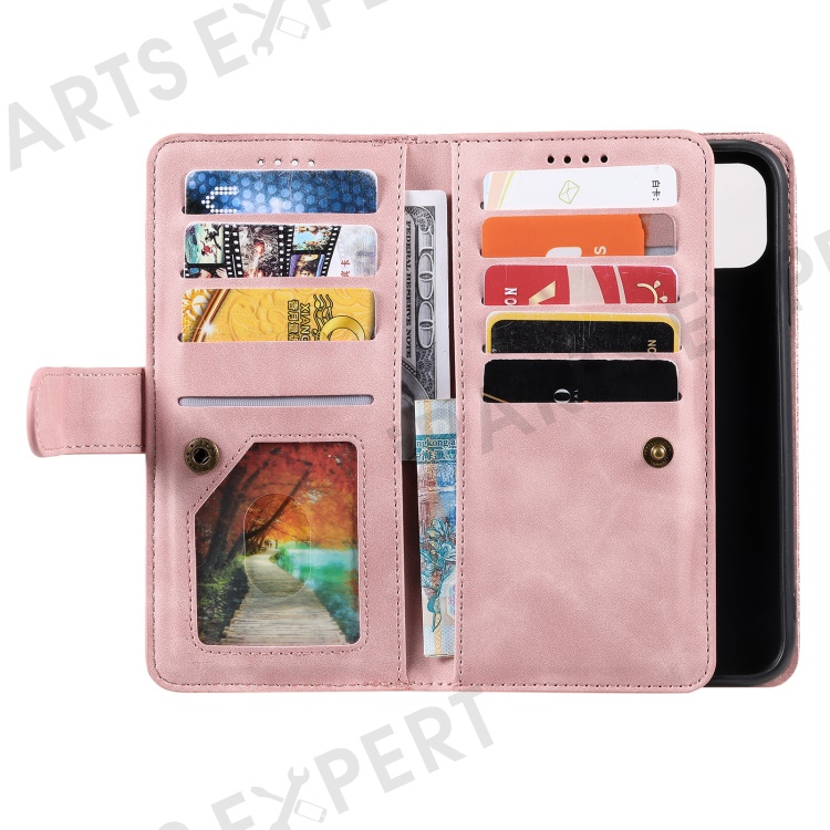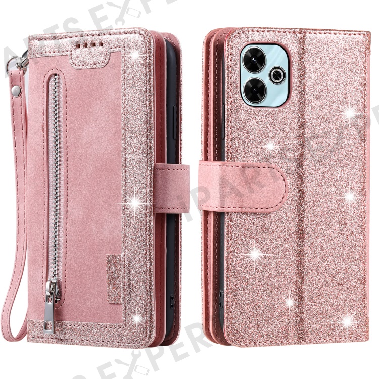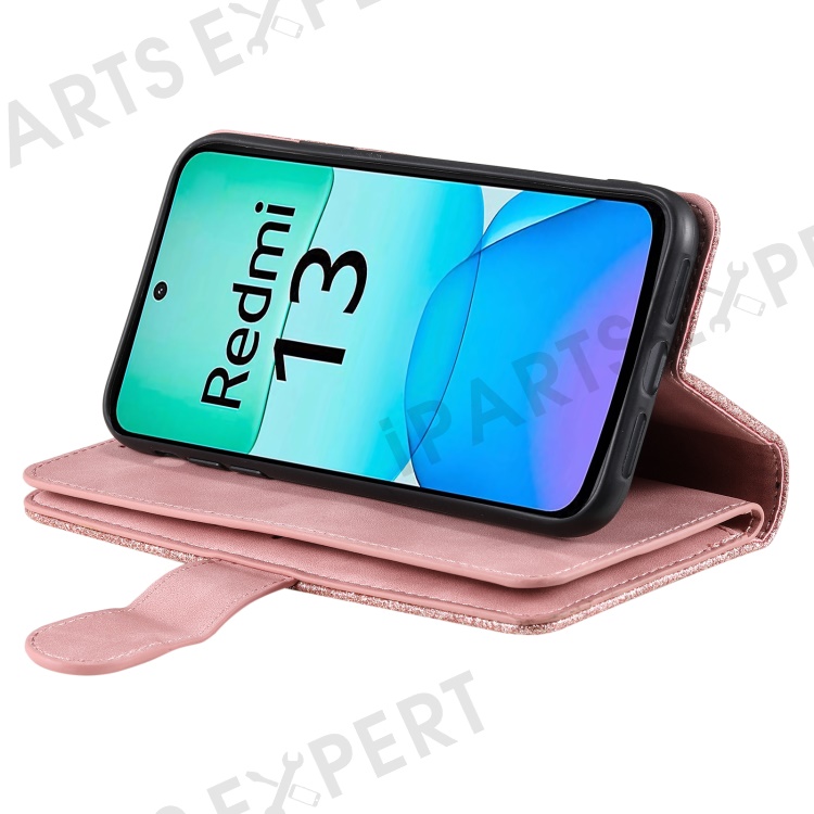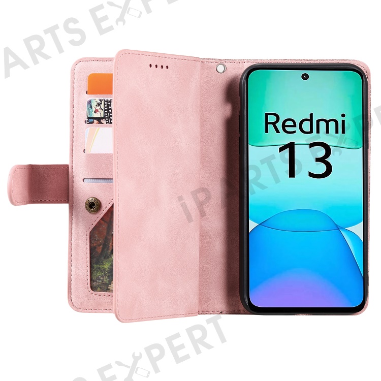 For Xiaomi Redmi 13 5G / 4G Case PU Leather Phone Cover with Zipper Wallet 9 Card Slots - Rose Gold