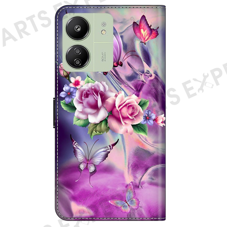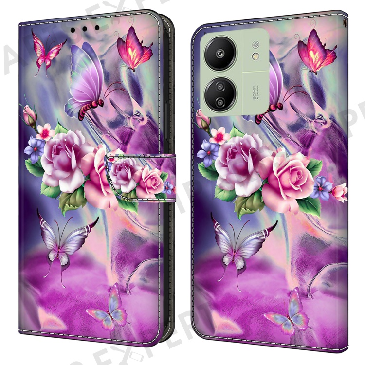 For Xiaomi Redmi 13C 4G / 13C 5G / Poco C65 4G / Poco M6 5G / 13R 5G Case PU Leather Stand Wallet Cover - Butterflies / Flowers