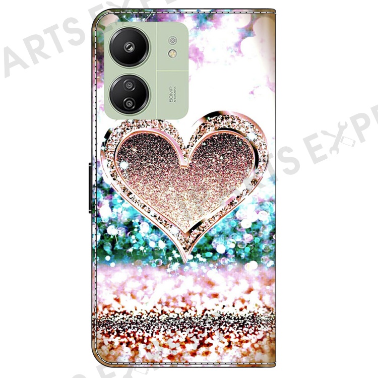 For Xiaomi Redmi 13C 4G / 13C 5G / Poco C65 4G / Poco M6 5G / 13R 5G Case PU Leather Stand Wallet Cover - Pink Diamond Heart