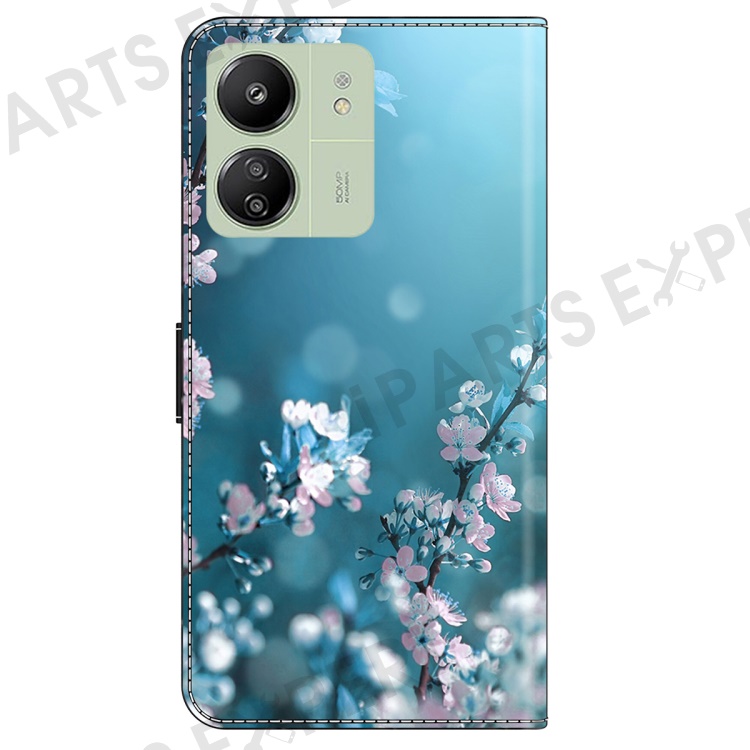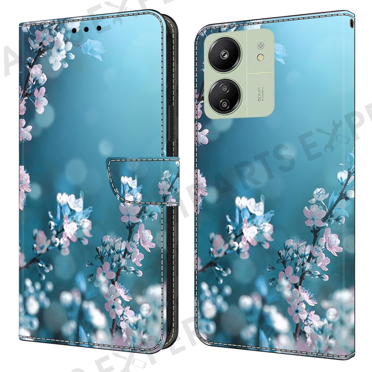For Xiaomi Redmi 13C 4G / 13C 5G / Poco C65 4G / Poco M6 5G / 13R 5G Case PU Leather Stand Wallet Cover - Plum Blossoms