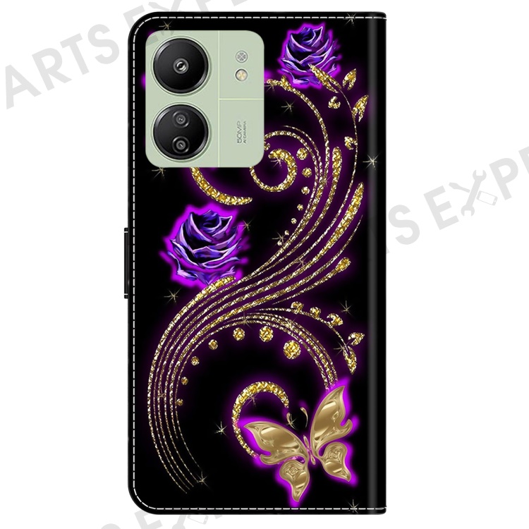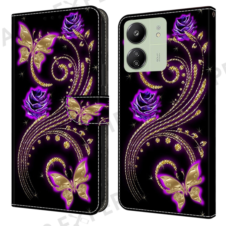 For Xiaomi Redmi 13C 4G / 13C 5G / Poco C65 4G / Poco M6 5G / 13R 5G Case PU Leather Stand Wallet Cover - Purple Flowers / Butterflies